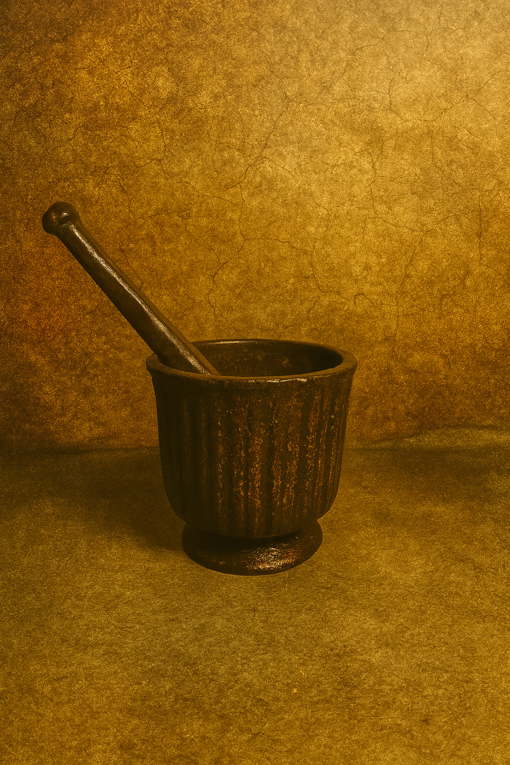 Such cast-iron mortars were part of every royal and village household — used for grinding Ayurvedic herbs and preparing authentic spice blends. Today, it stands as a symbol of India’s timeless culinary tradition and a masterpiece for collectors.