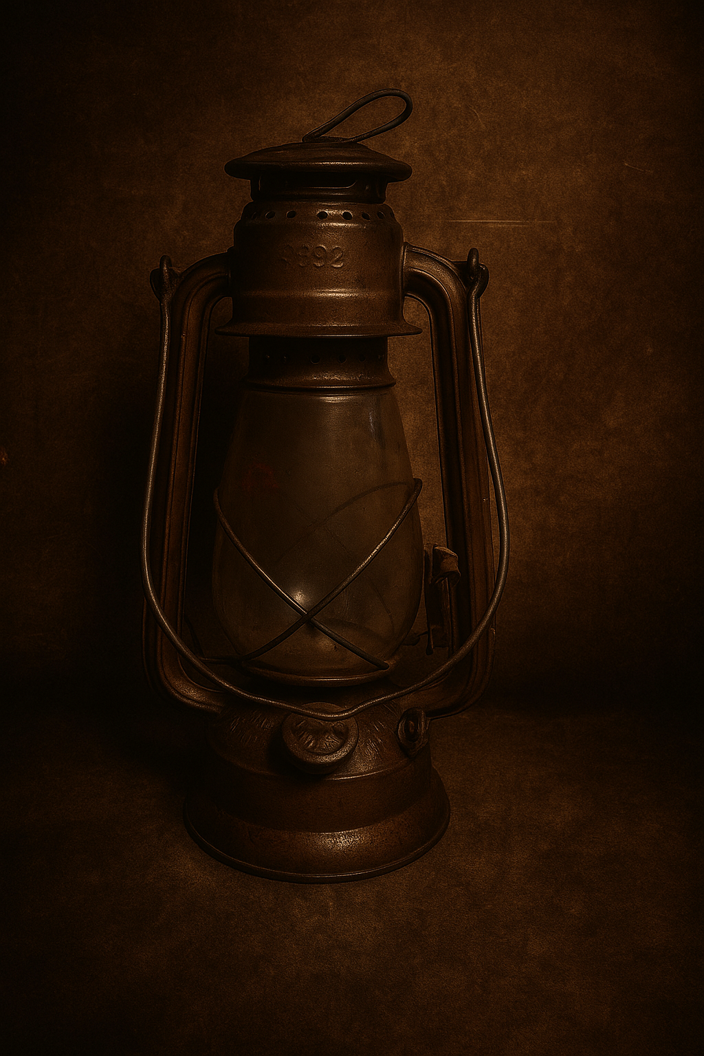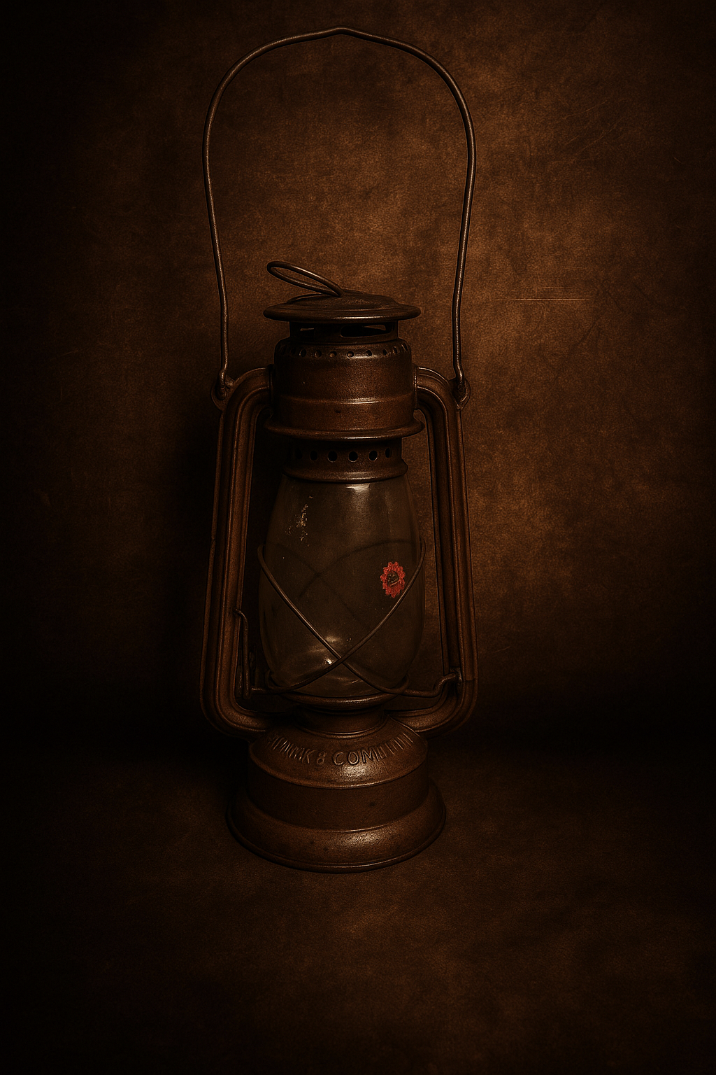 Designed in the classic wind-proof hurricane style, this lantern was widely used in homes, workshops, railway stations, and farms before electric lighting became common. Today, it stands as a striking relic of industrial history.