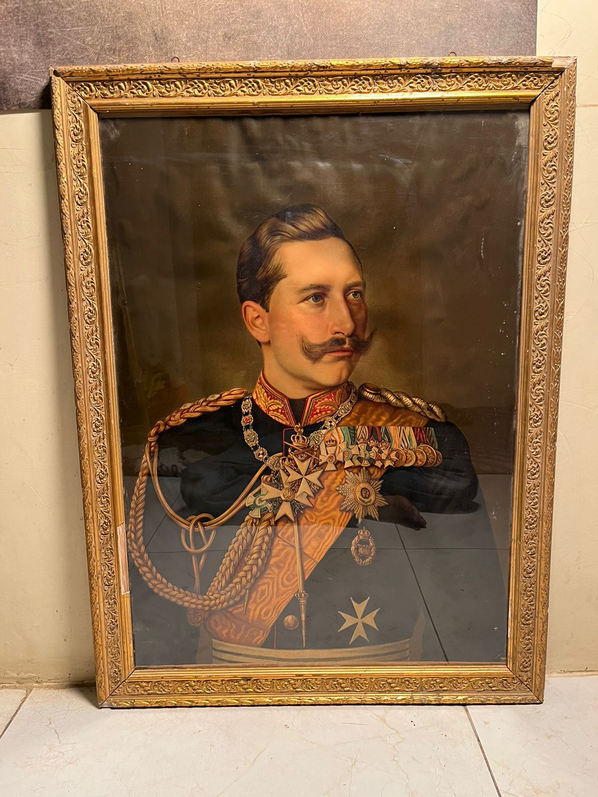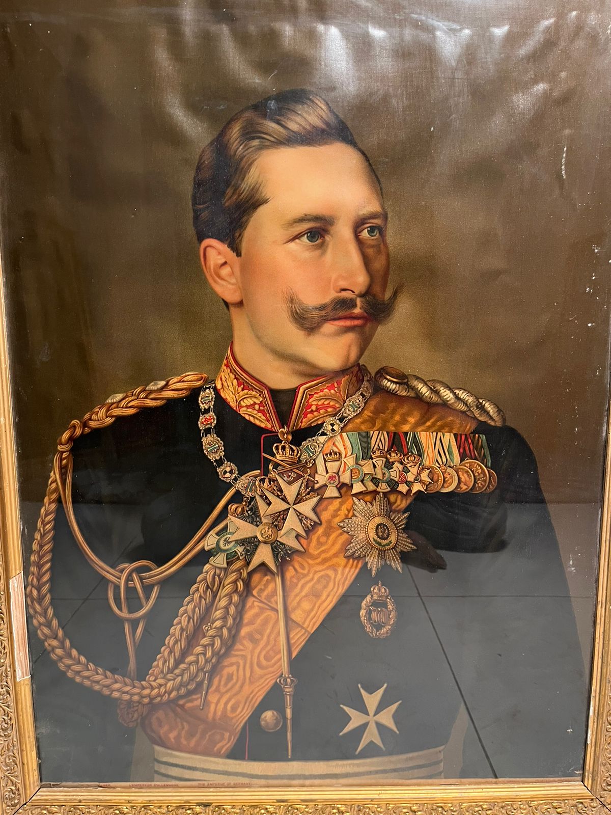 A rare and authentic antique oleograph portrait of the German Emperor (Kaiser), printed in Germany over 120 years ago.