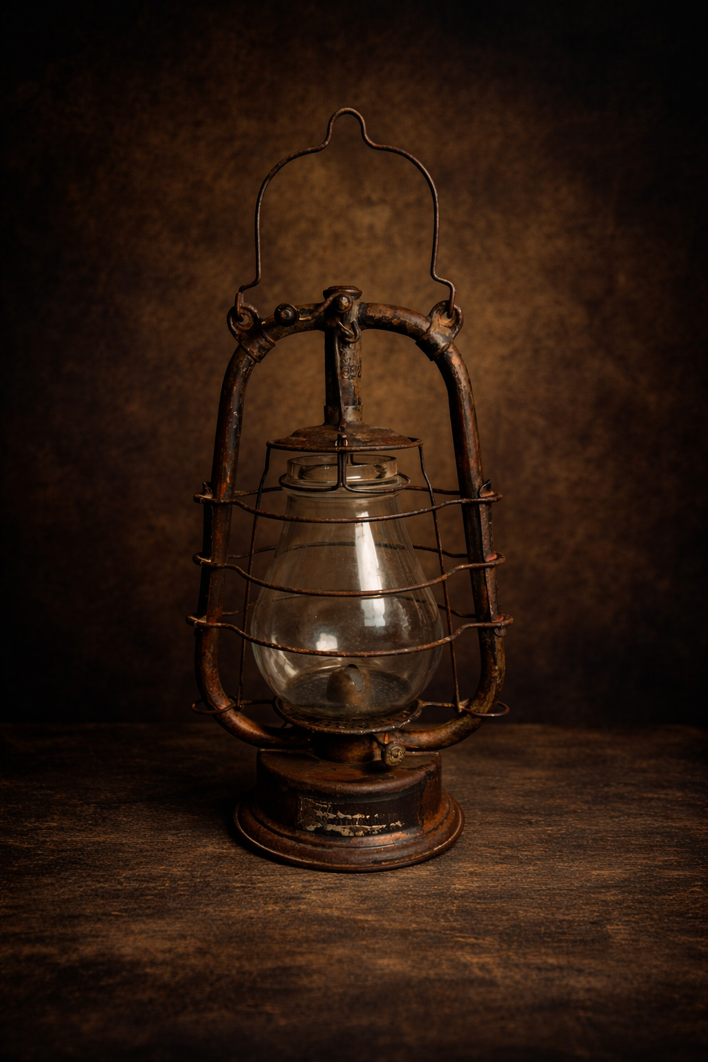 Dating back over a century, this lantern belongs to the era when railway workers relied on flame-based lighting for signaling and safety, long before modern electricity took over. Its classic design — featuring a metal protective cage, clear glass globe, and hanging handle — was specifically built to withstand harsh outdoor conditions.