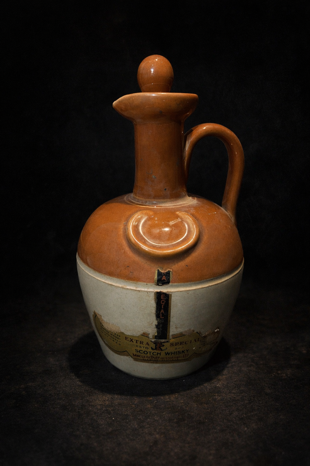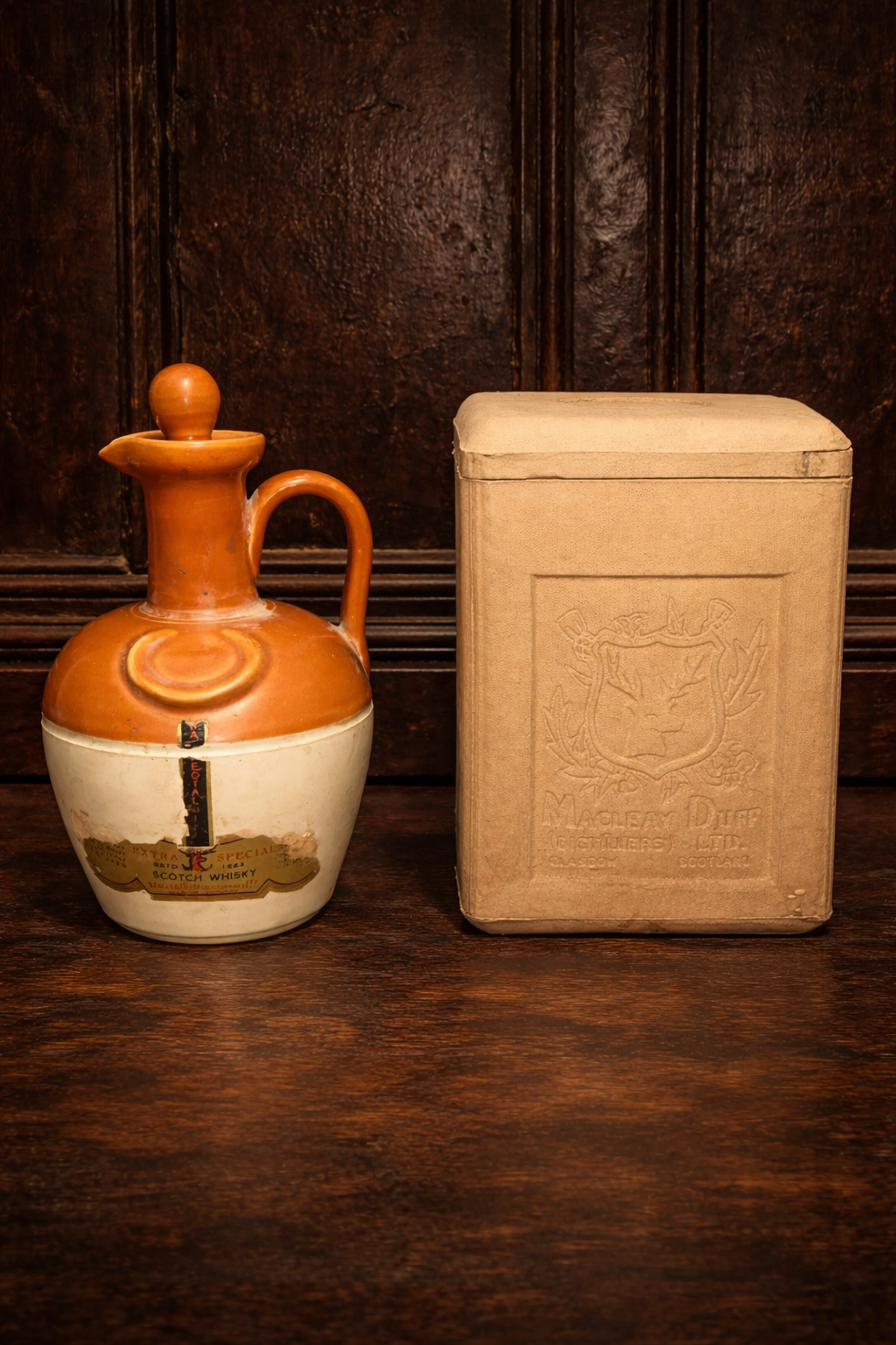 A rare and highly collectible antique ceramic Scotch whisky jug, beautifully preserved with its original branded outer box, making it an exceptional piece for serious collectors and luxury interior décor enthusiasts.