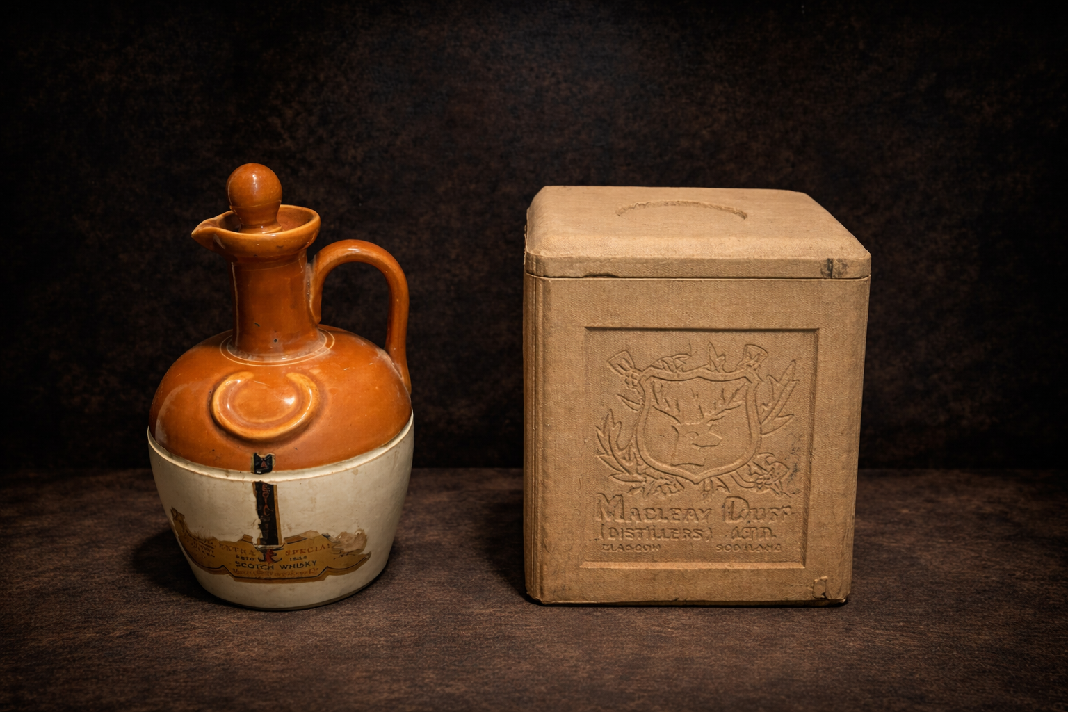 The accompanying original Maclay Duff distillers box further enhances the rarity and value of this piece. Such complete sets are increasingly difficult to find, especially in this preserved condition.