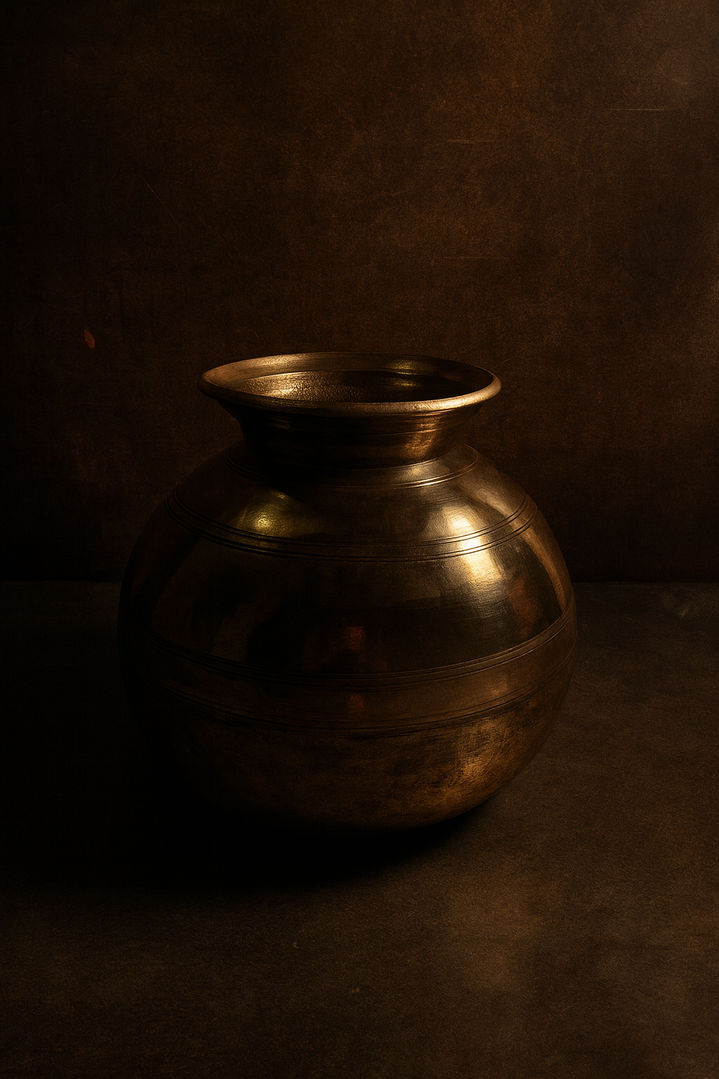 Perfect for luxury interiors, heritage resorts, or antique displays, this pot adds a sense of royal grace and authenticity wherever placed. Under soft warm lighting, its bronze sheen glows beautifully, celebrating India’s timeless artistry.
