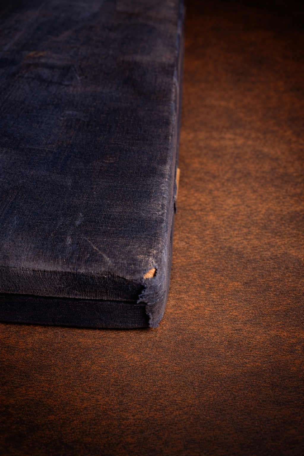 This is an original antique piece. The outer velvet shows visible wear, edge damage, and fabric loss in some areas due to age. Kindly refer to images for exact condition before purchase