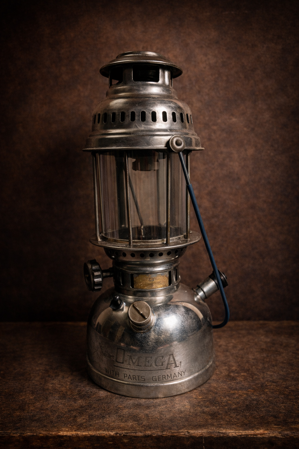 Presented here is a rare and original OMEGA Petromax pressure lantern from Germany, a legendary example of classic engineering, durability, and industrial design. Unlike many vintage lanterns preserved only for display, this piece remains in fully working condition, significantly enhancing its value and collectability.
