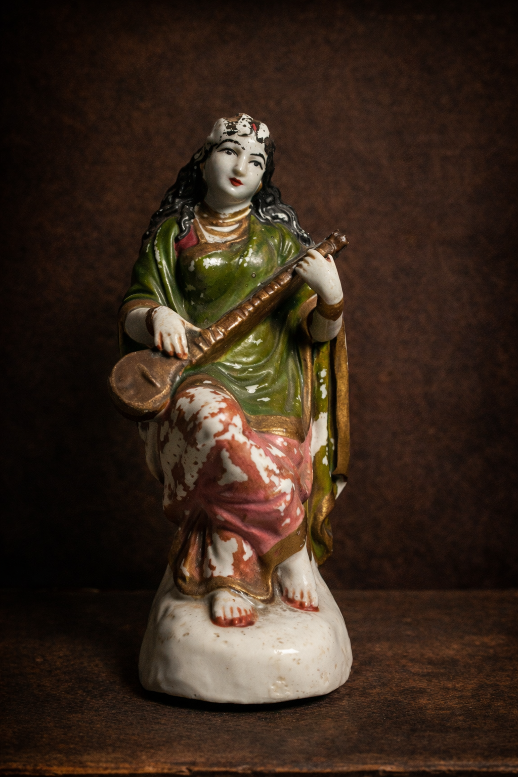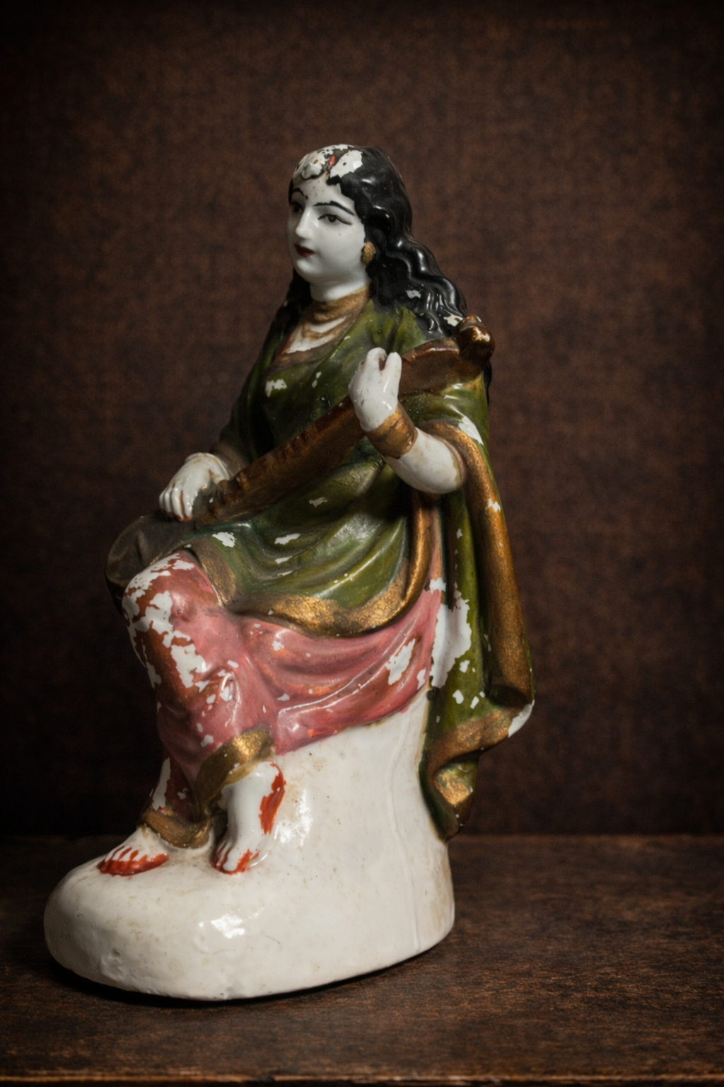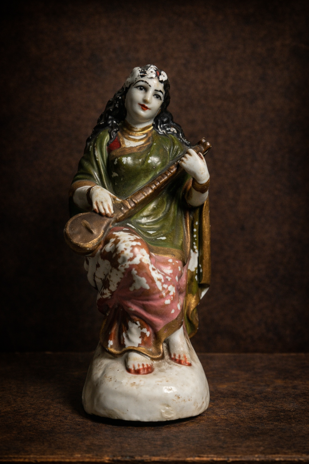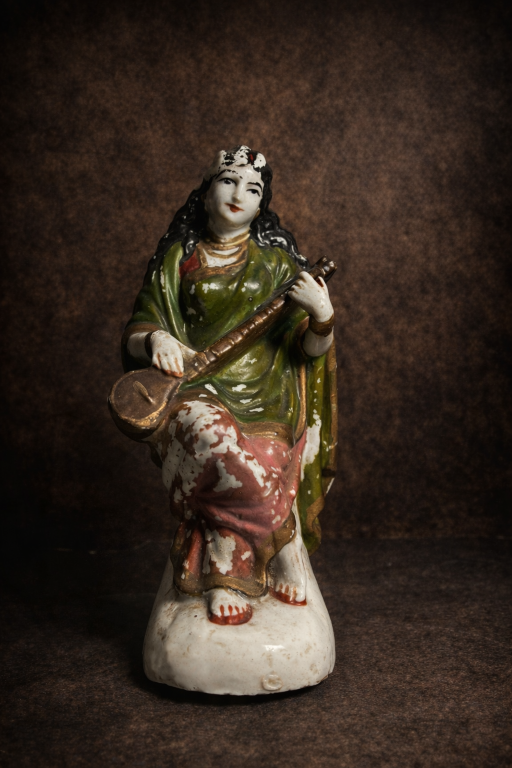 Rare Antique Porcelain Goddess Saraswati Figurine – Ravi Varma Inspired | Hand-Painted Vintage Collectible Idol