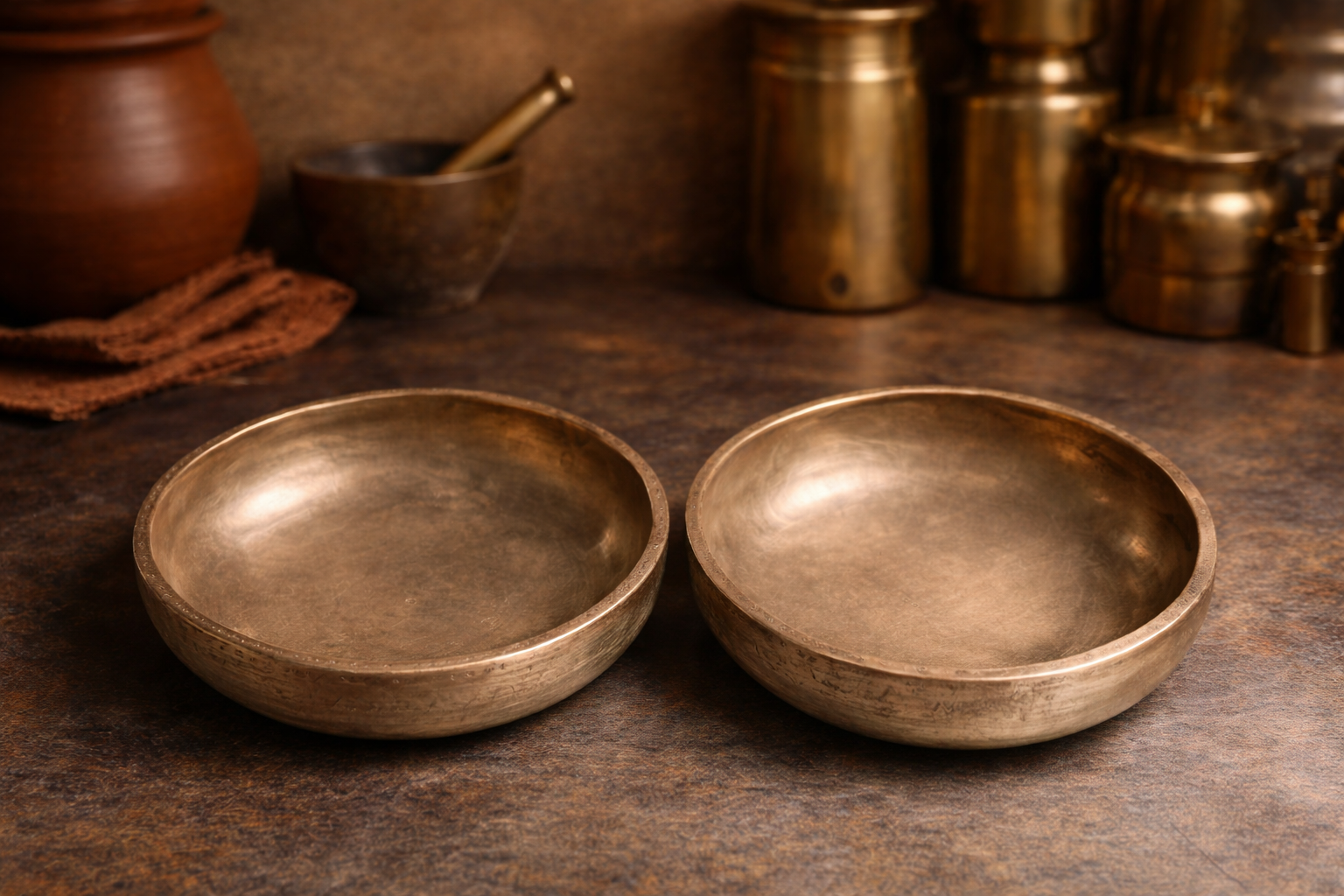 • Crafted from kaansa (bell-metal copper-tin alloy)