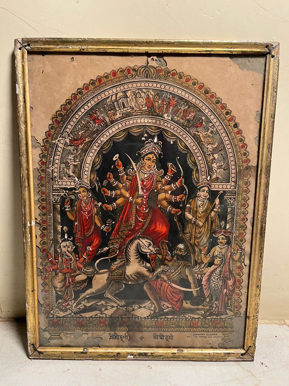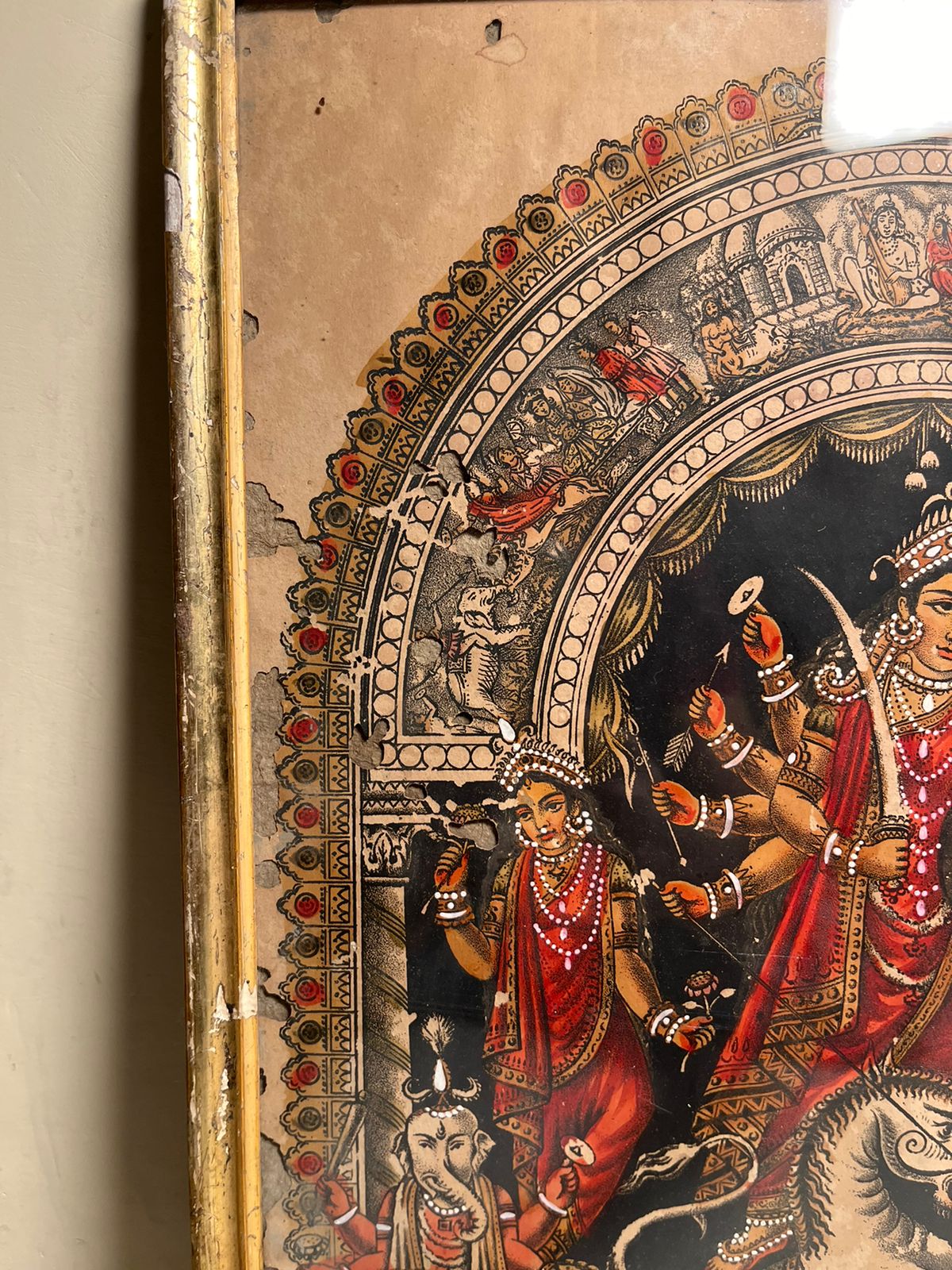 Such prints were not merely decorative — they were deeply spiritual pieces, often placed in homes and temples during Durga Puja, making them an integral part of India’s cultural and religious heritage.