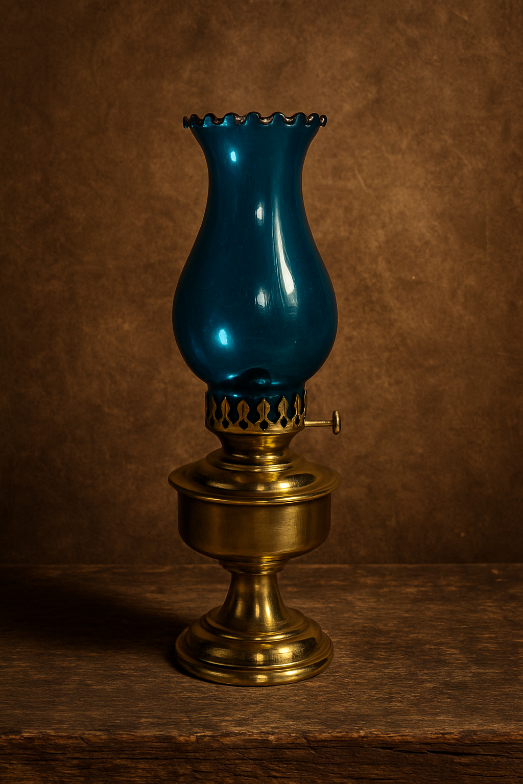 • Vintage brass lamp with blue colour finish
