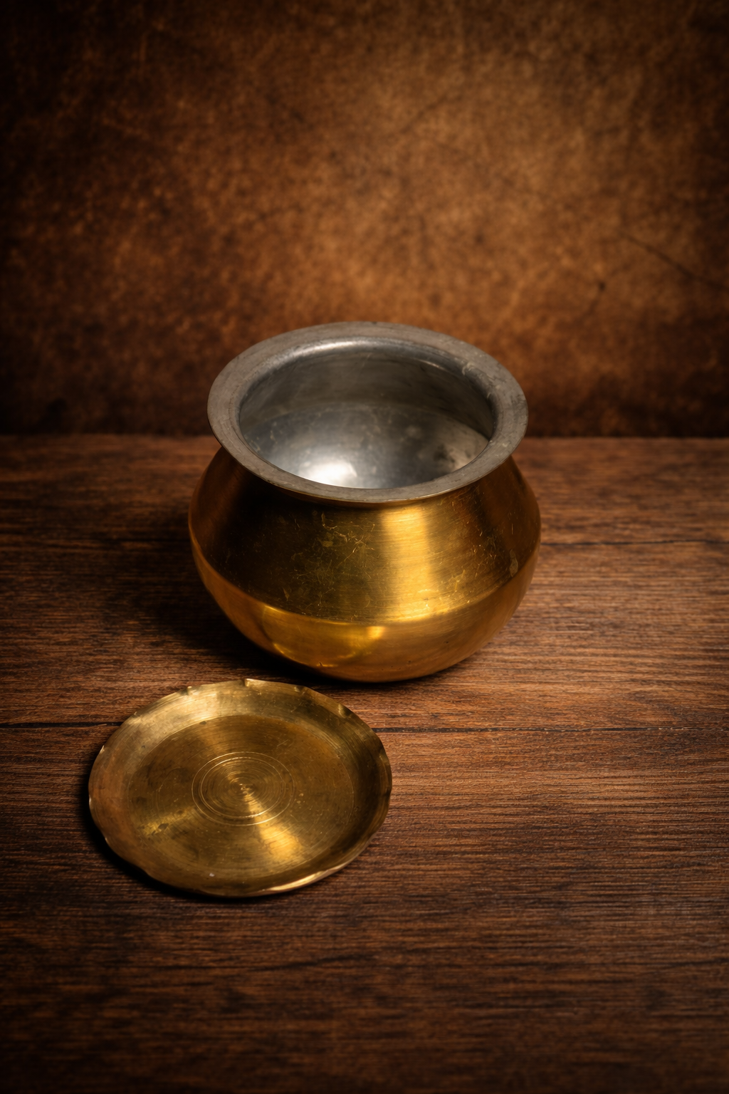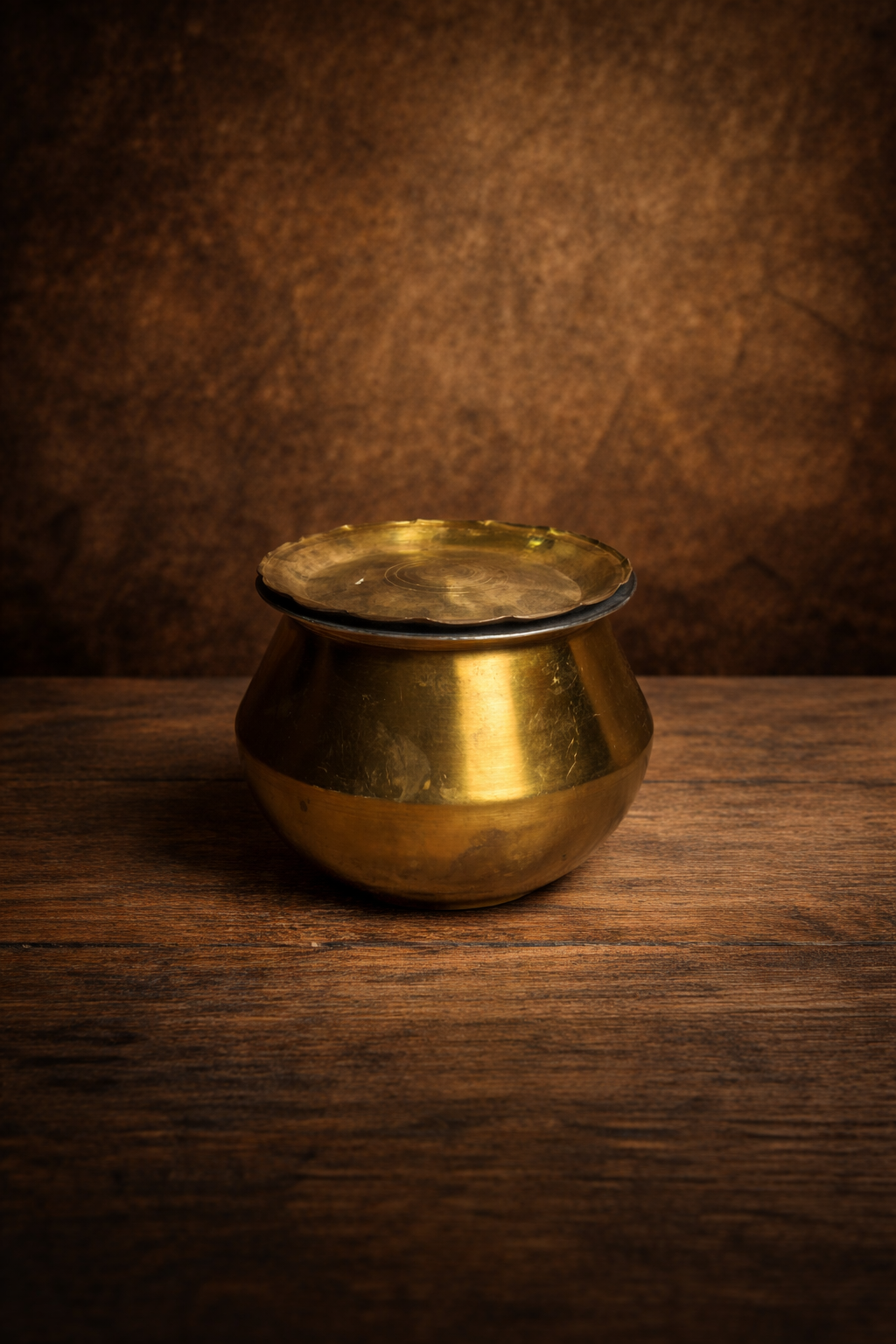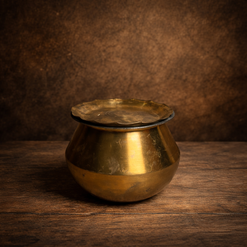 Vintage Brass Degchi With Lid (Haandi) Cooking Vessel