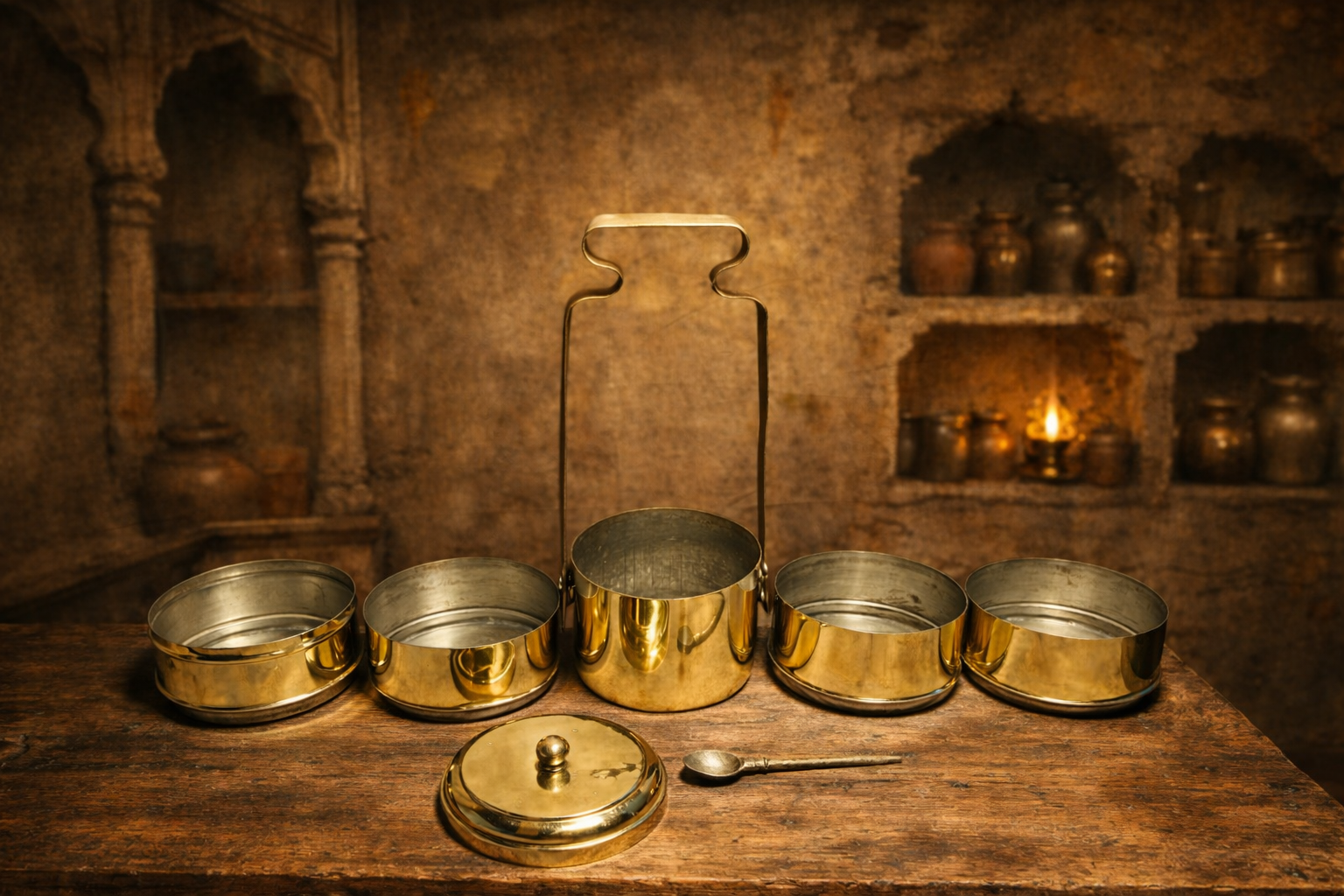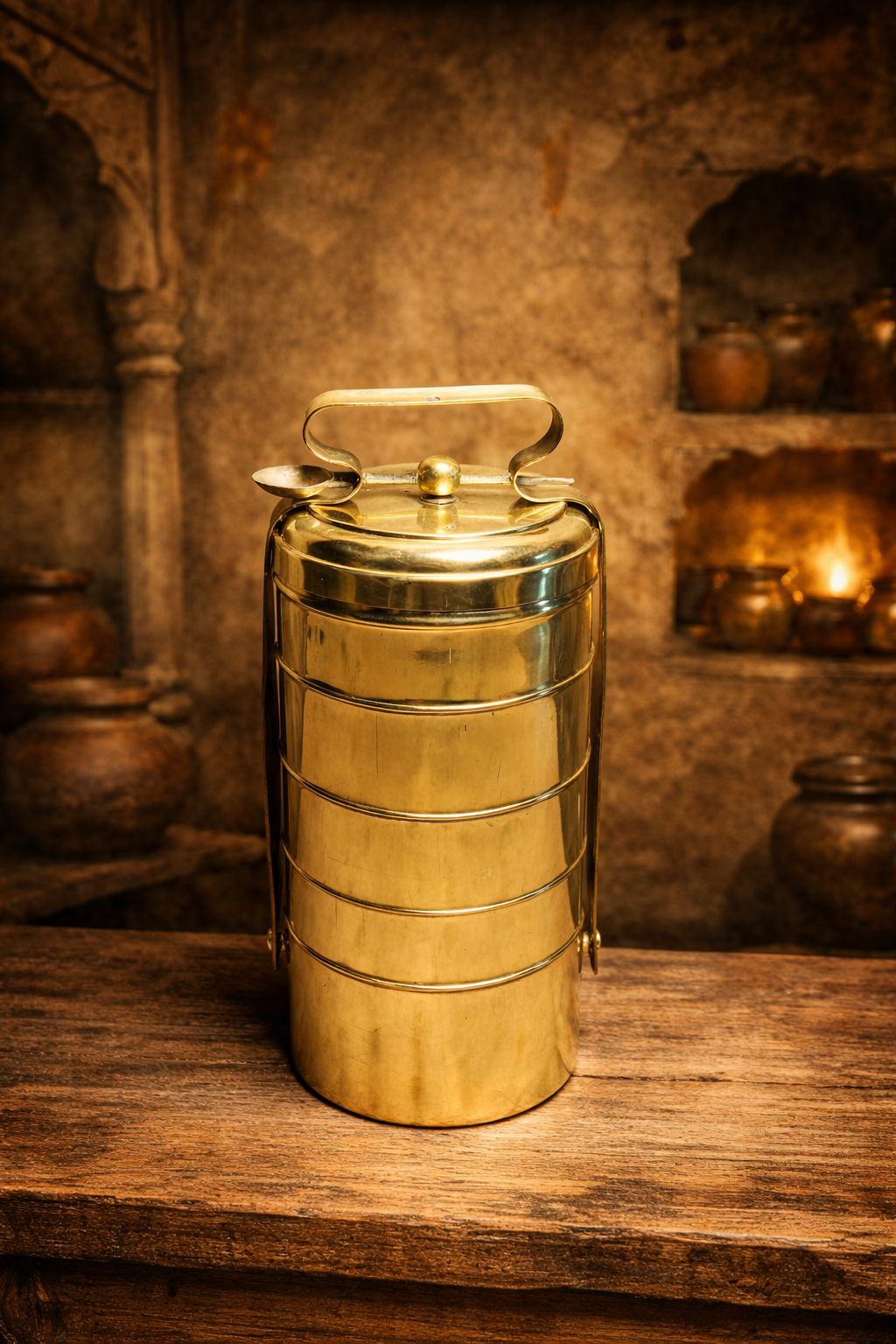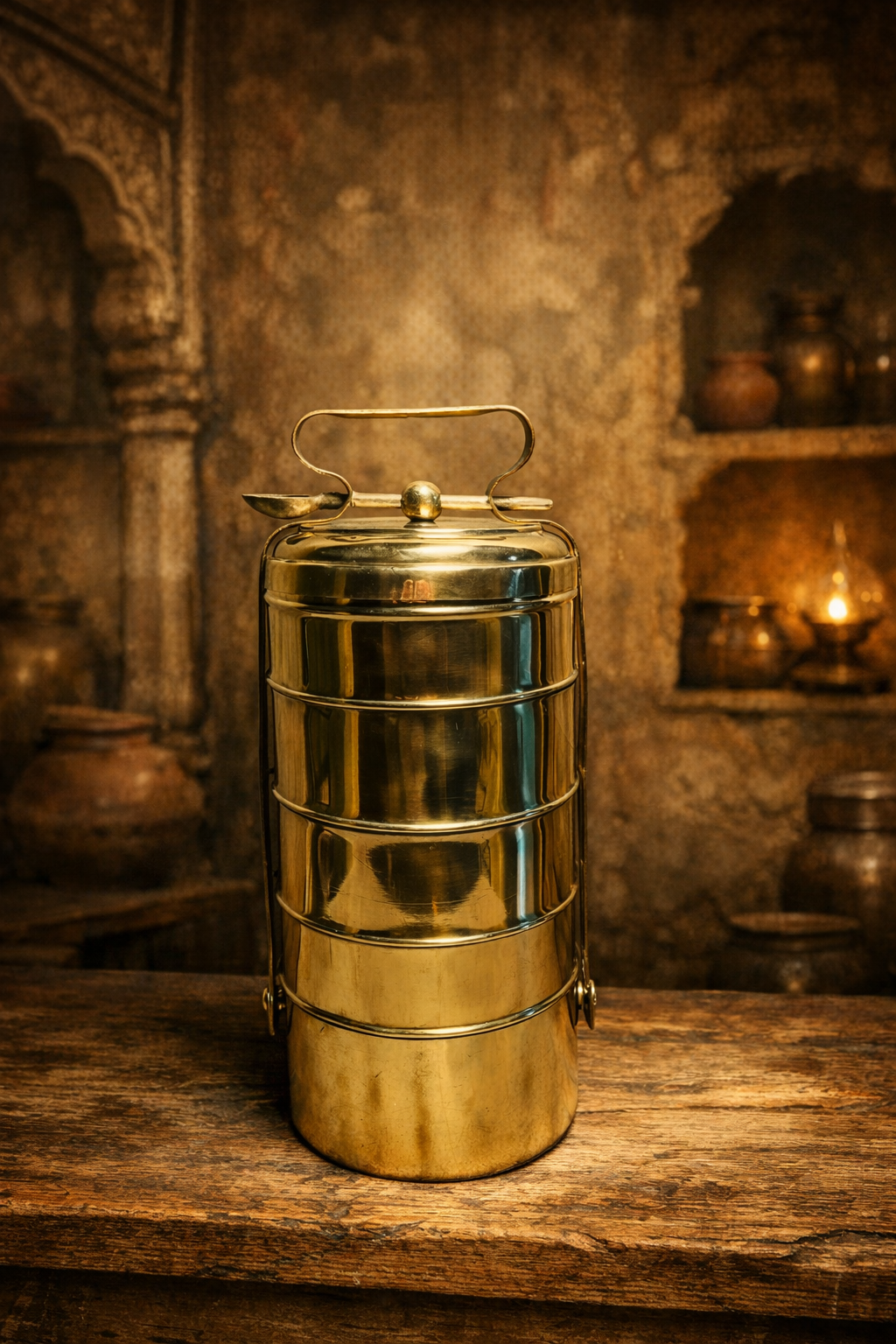 Vintage brass extra large size 5 tier tiffin box