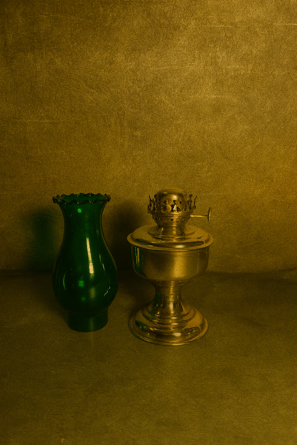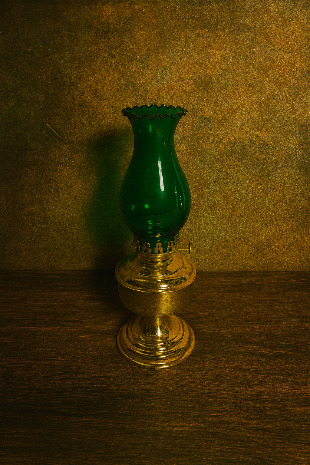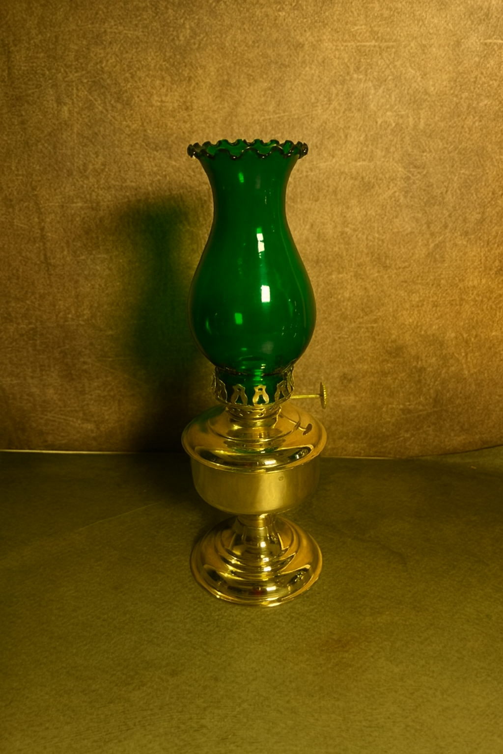 • Vintage brass lamp with green finish