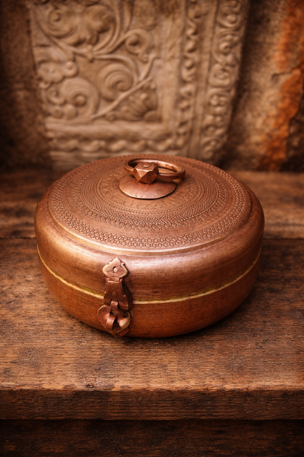 Vintage brass hand carving kadi khunta chappati box