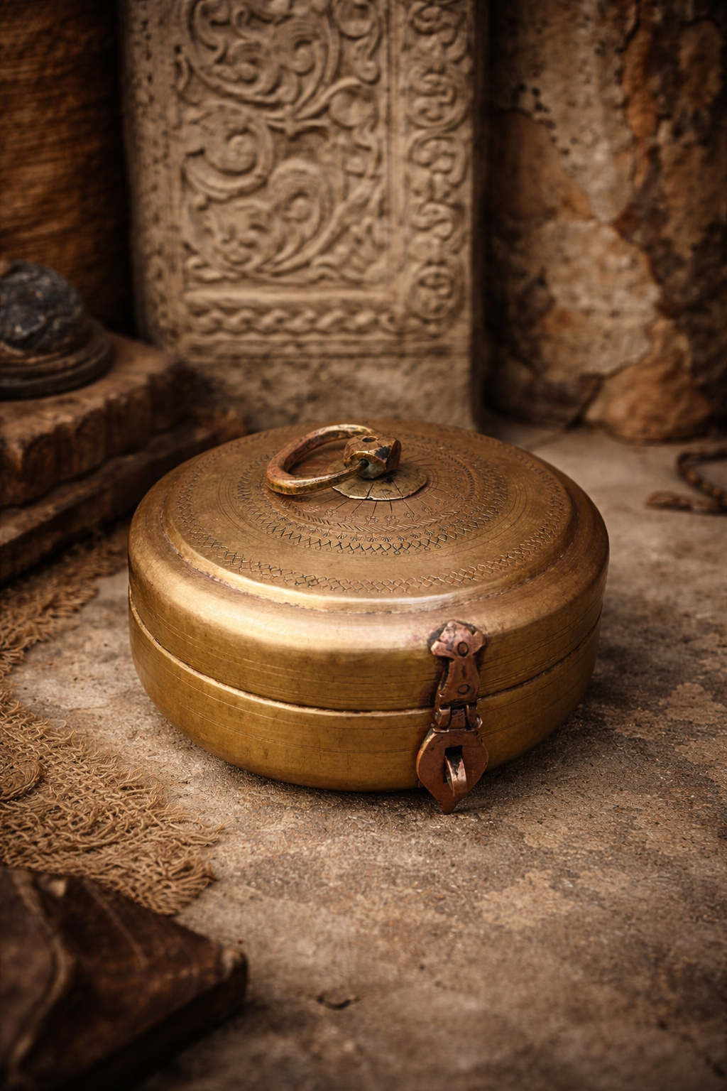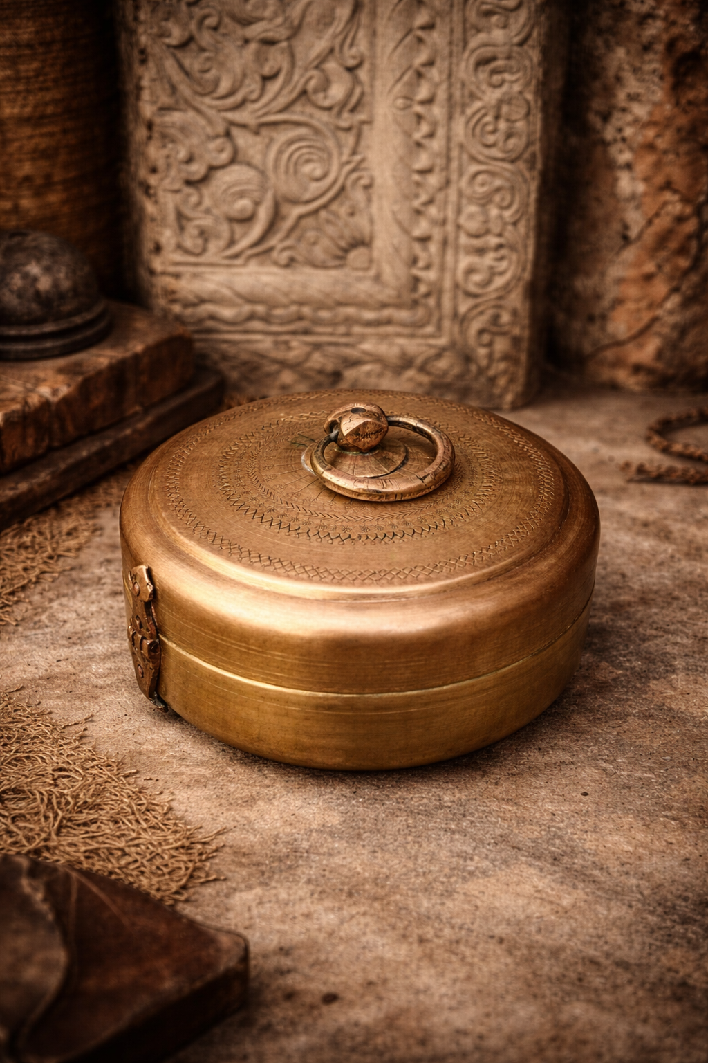 Vintage Handcrafted Brass Storage Box (With Lid)