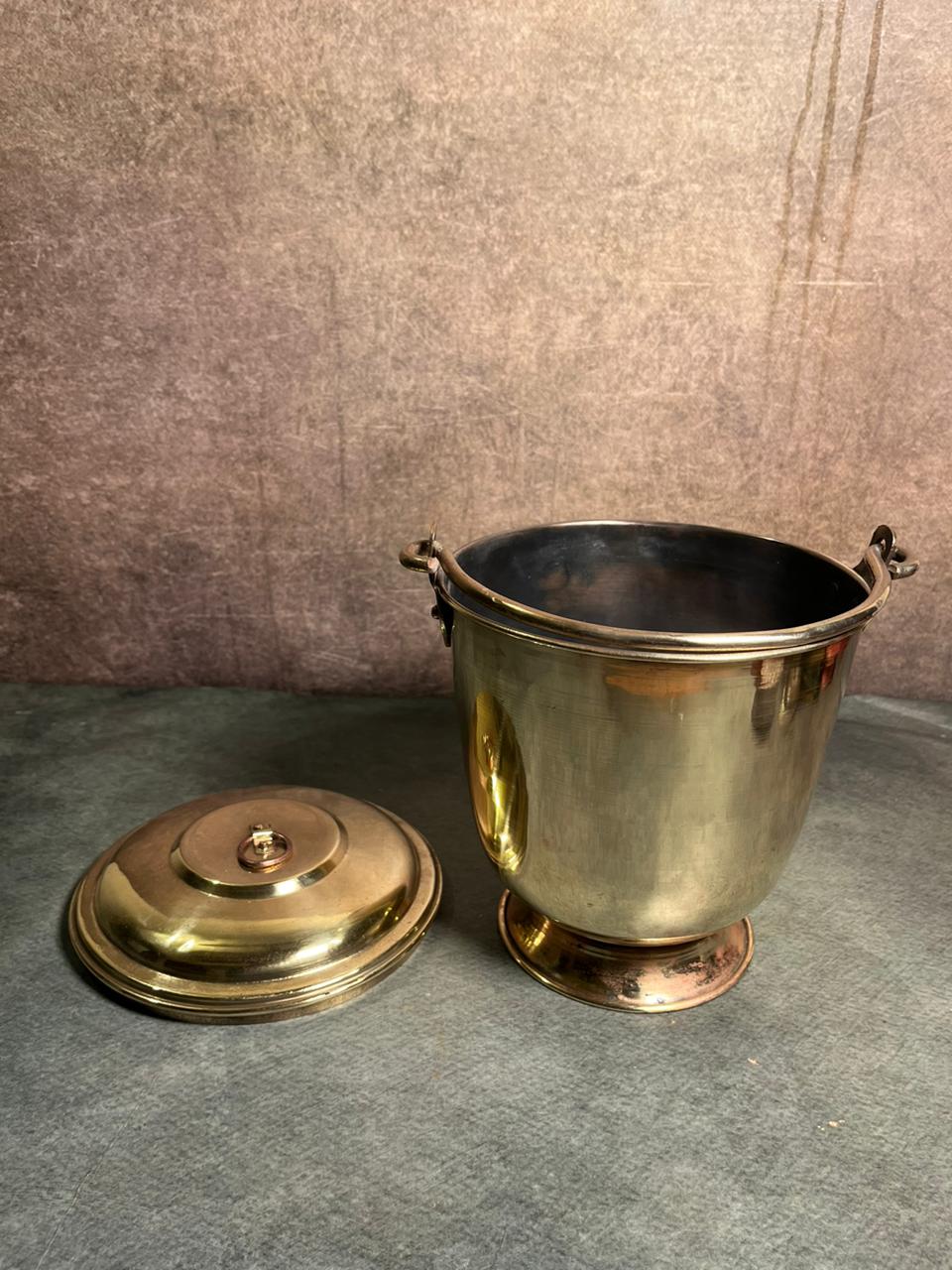 Bring timeless elegance to your bar collection with this vintage brass ice bucket, a perfect blend of utility and charm. Handcrafted from solid brass, this classic piece comes with a fitted lid and side handles, making it both functional and decorative.