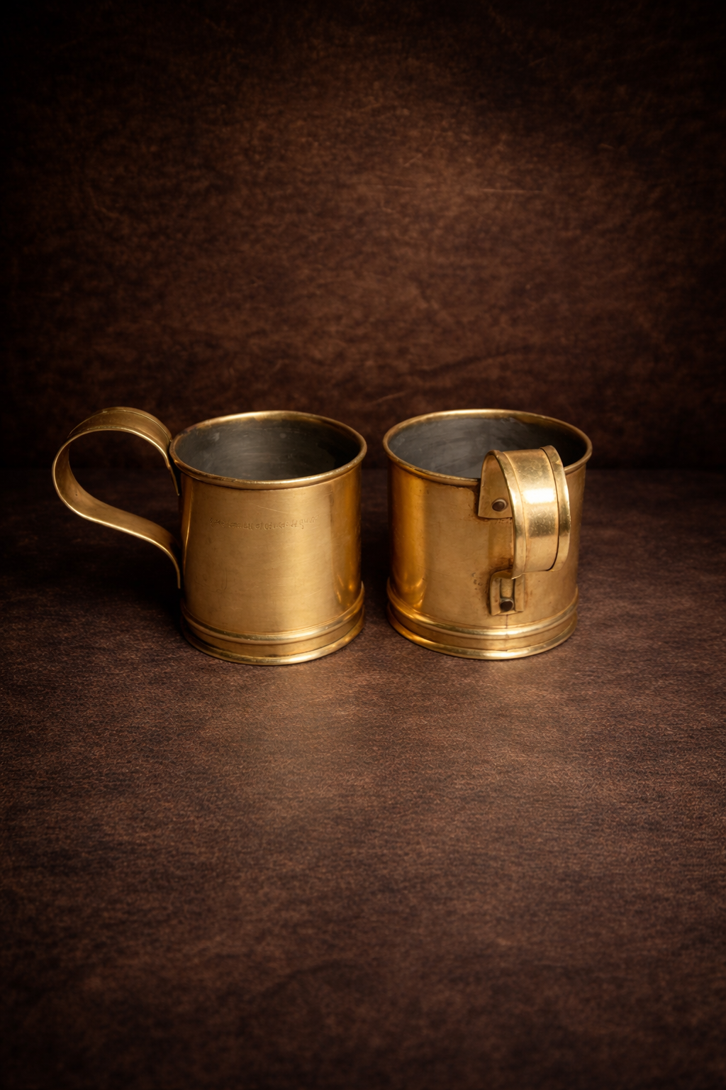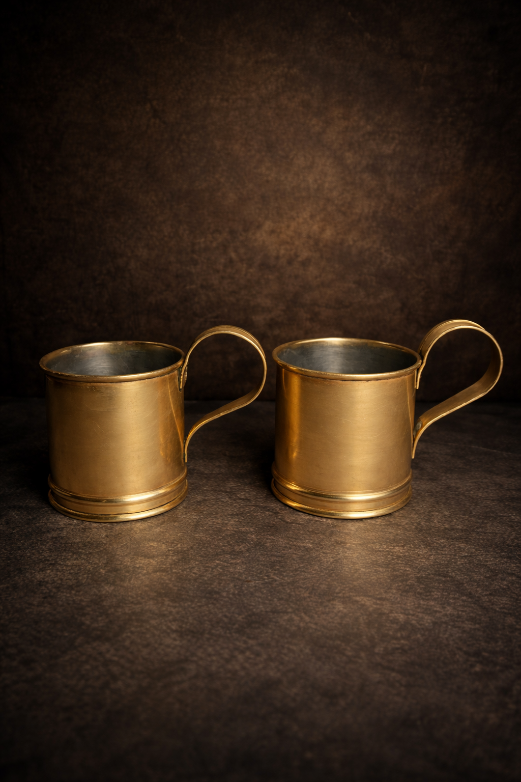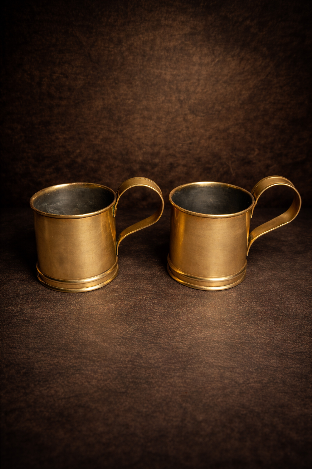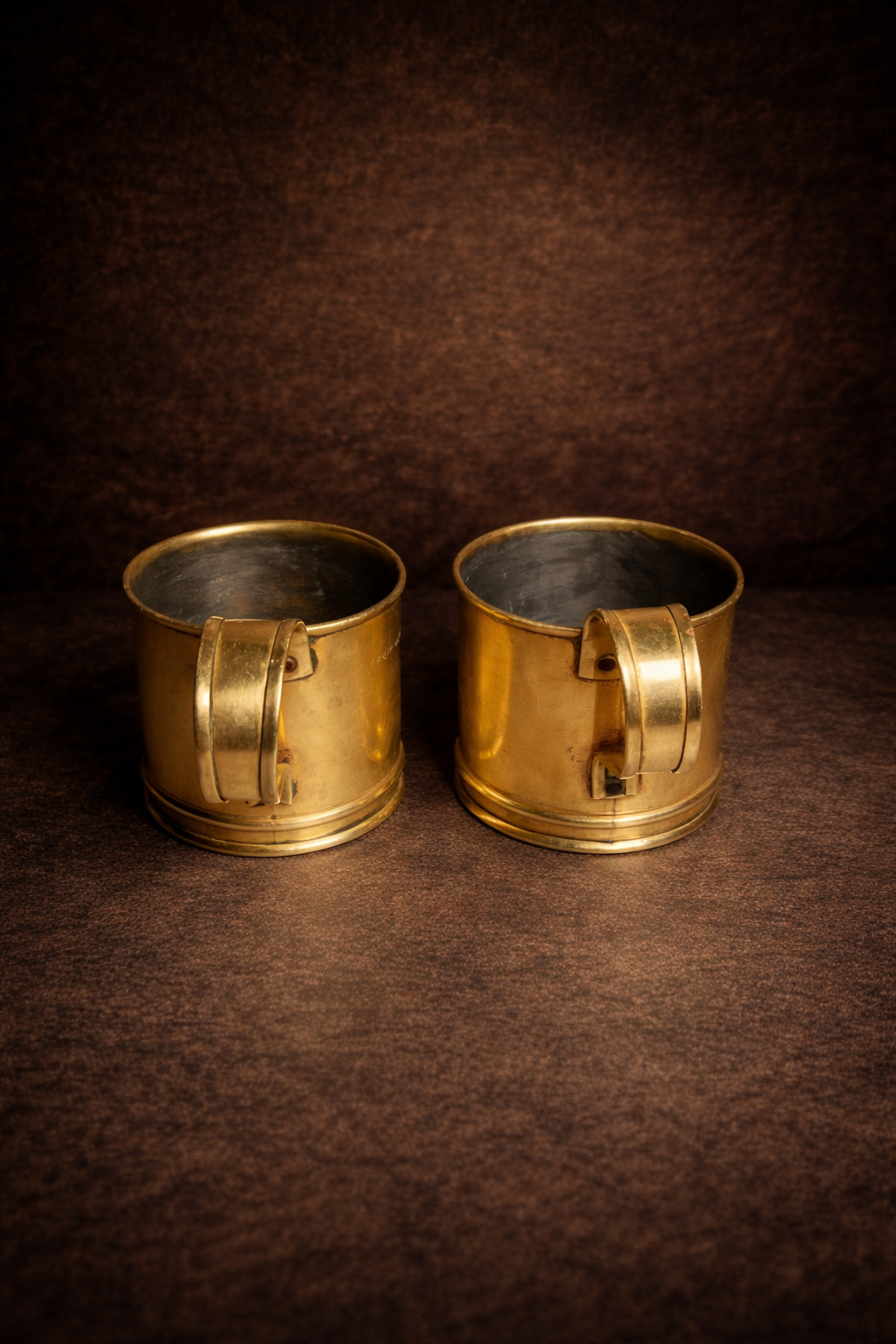 A stunning pair of vintage brass mugs, showcasing timeless craftsmanship and solid build quality. These mugs carry a rich antique character with their warm golden tone and minimalistic yet elegant design.