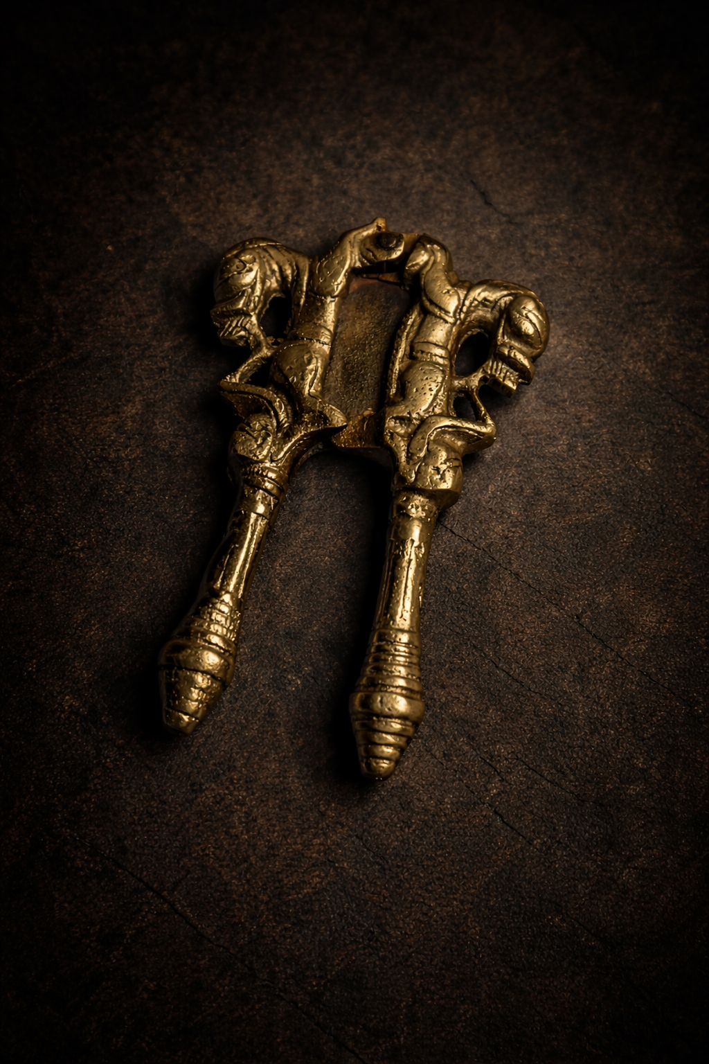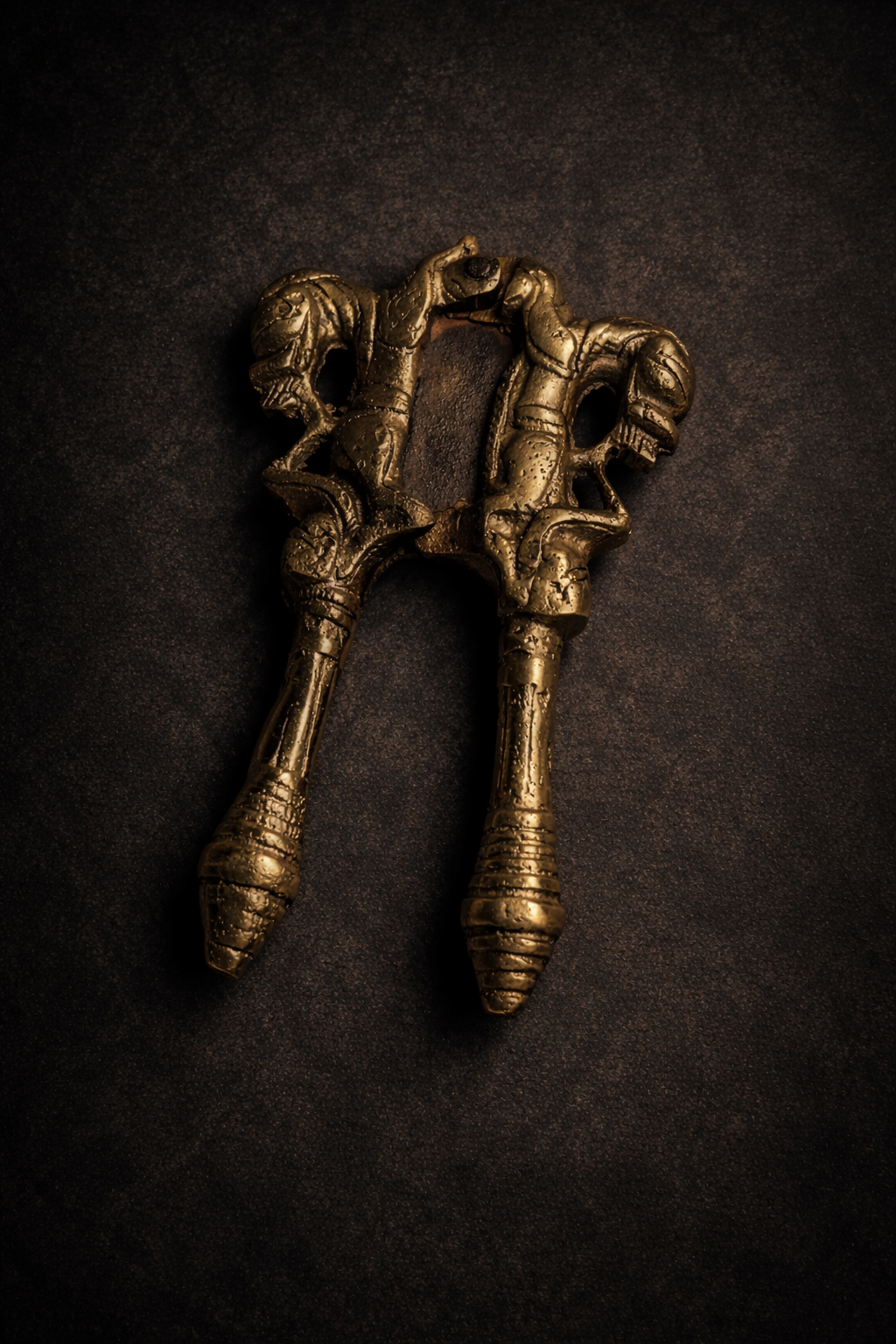 A traditional small-form brass tool referred to as a but cutter, designed with a functional profile for precision cutting or trimming tasks. Crafted in solid brass with purposeful utilitarian form, it reflects durable metalwork typical of heritage utility implements. As a collectible, it represents classic metal tool design valued for everyday practicality and material quality.