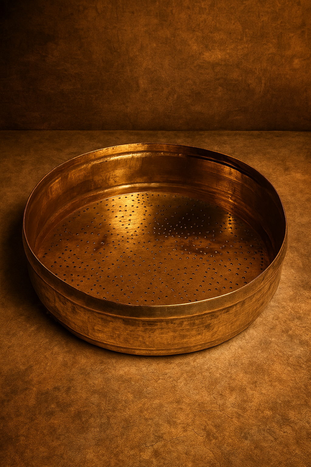 This vintage brass solid weight chalni (grainer) is a classic example of traditional Indian metal kitchenware. Crafted from solid brass, this utensil was historically used for sifting grains, pulses, spices, and other dry foods. Its durable construction and timeless design make it both a functional heritage piece and a decorative collectible for vintage décor and kitchenware collections.