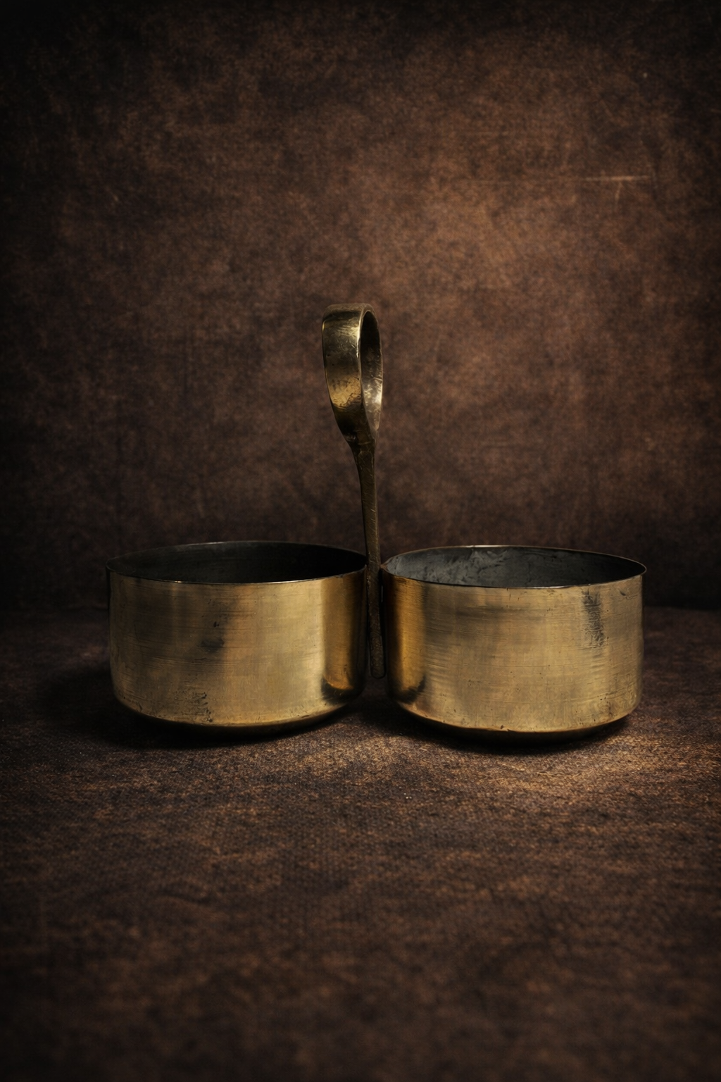Vintage brass two bowl basket
