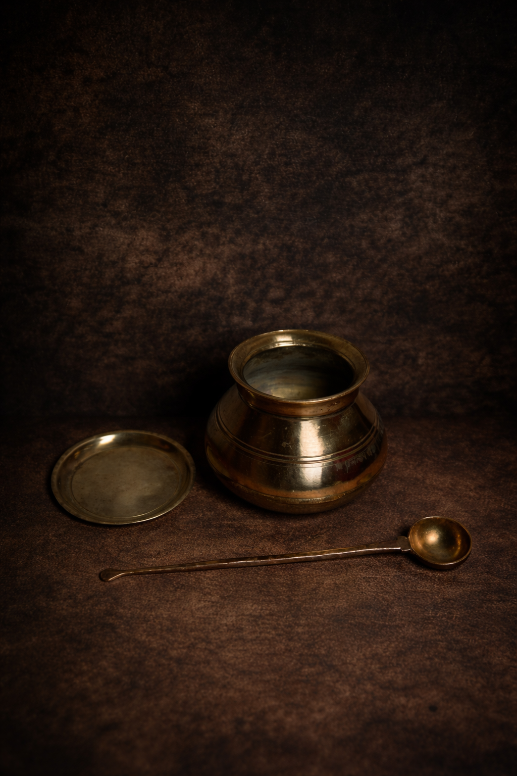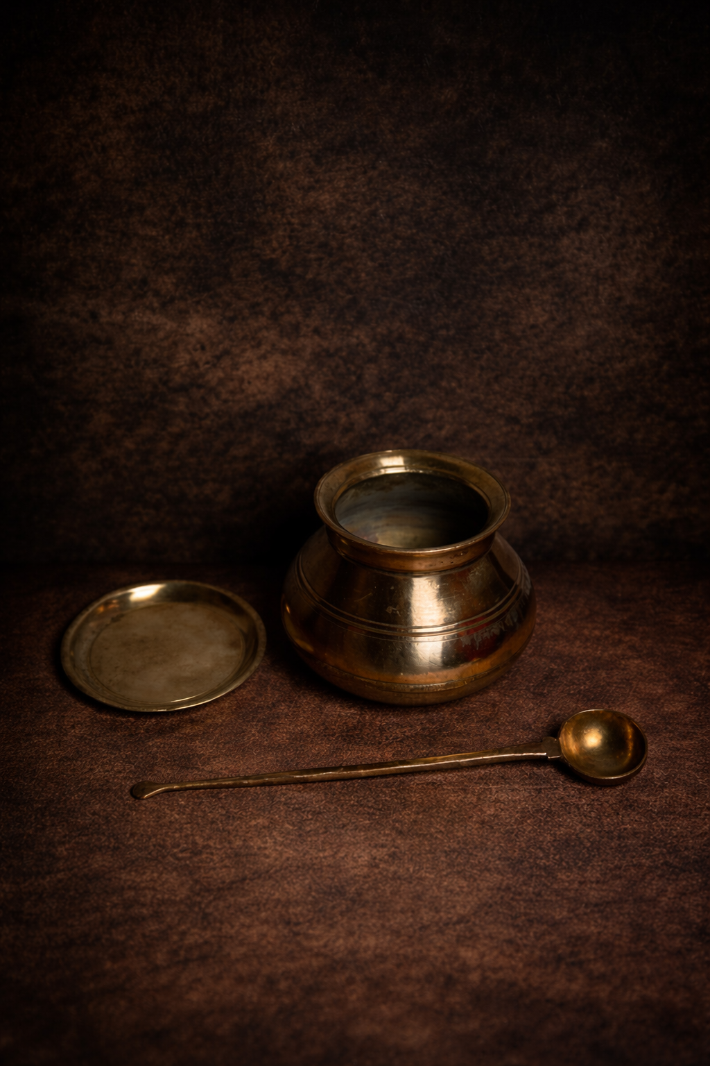 Vintage bronzee haandi with ladle and lid