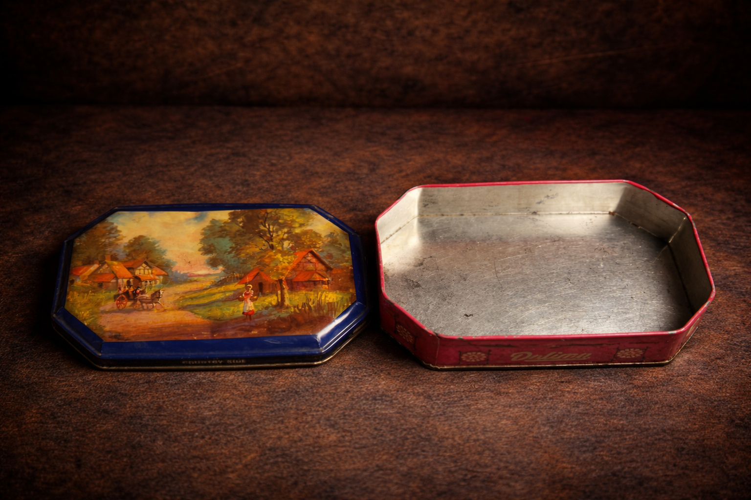 With its deep blue border, soft earthy tones, and aged finish, this tin brings a perfect blend of art, nostalgia, and vintage charm.