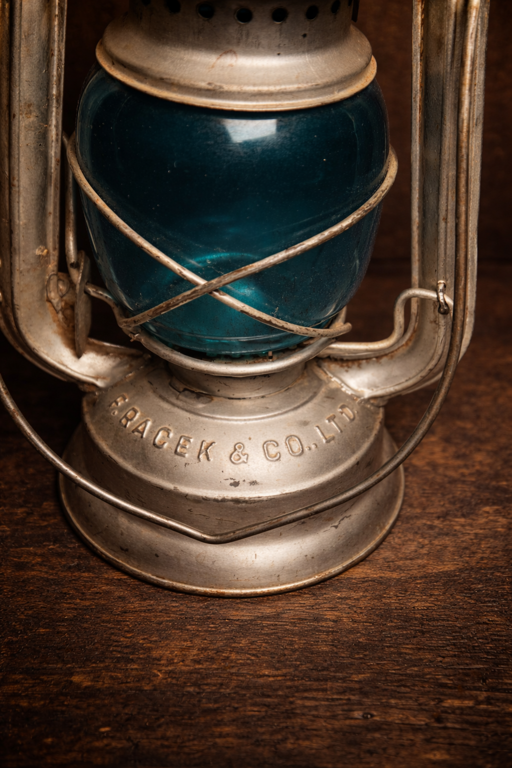 Vintage German Hurricane Lantern – FRACEK & Co. Ltd. | Original Blue Glass | Antique Collectible
