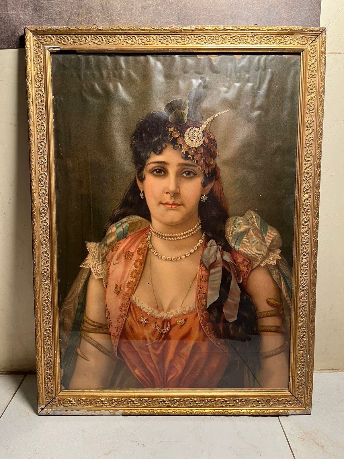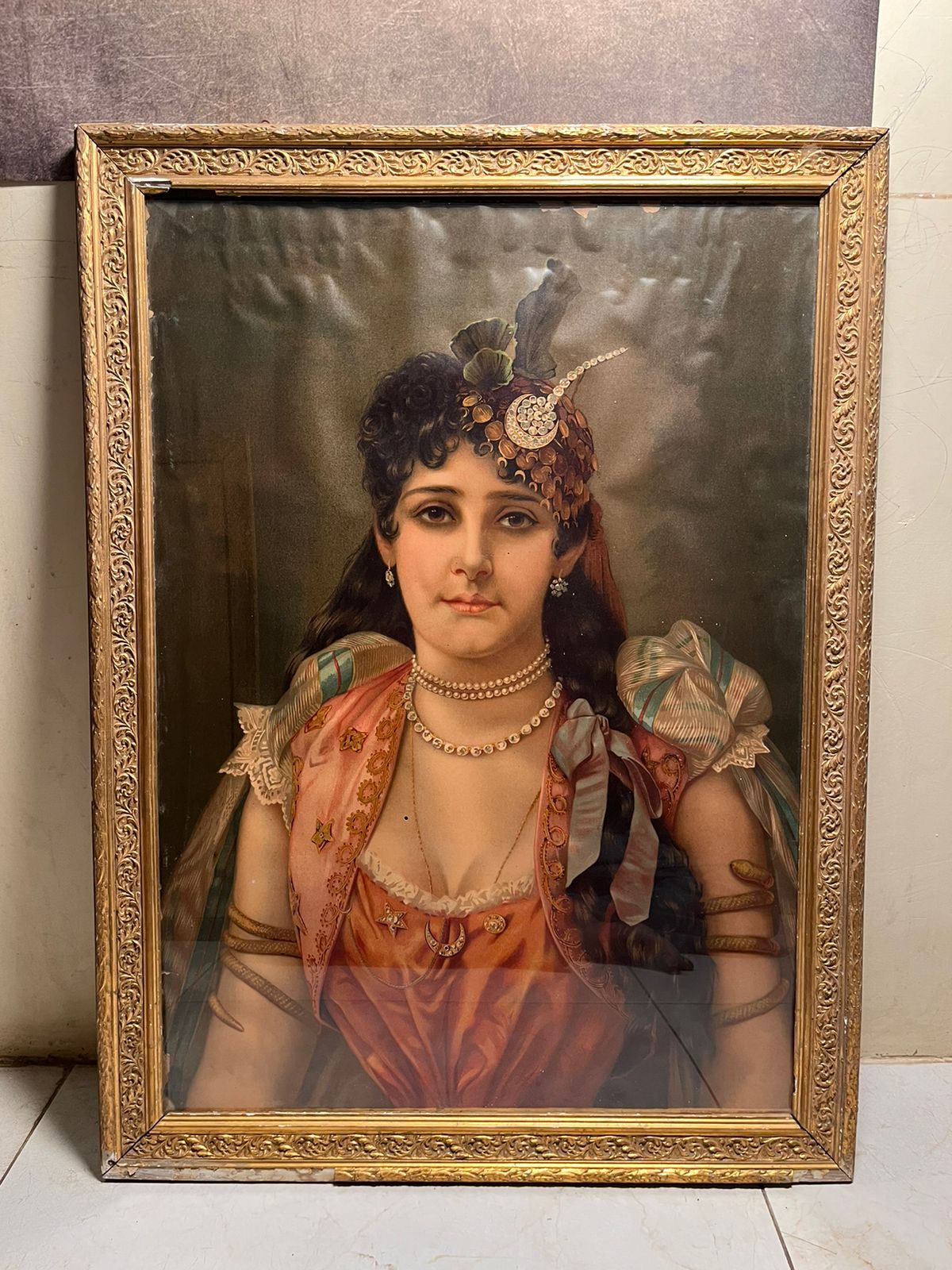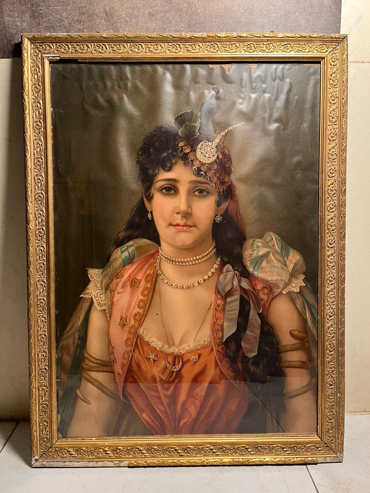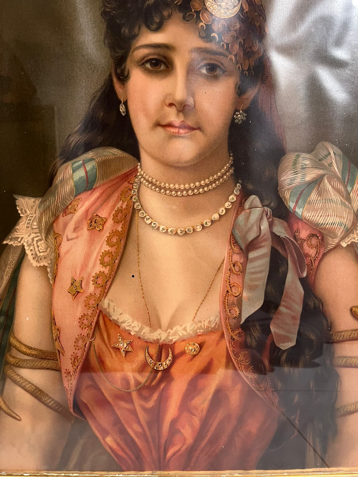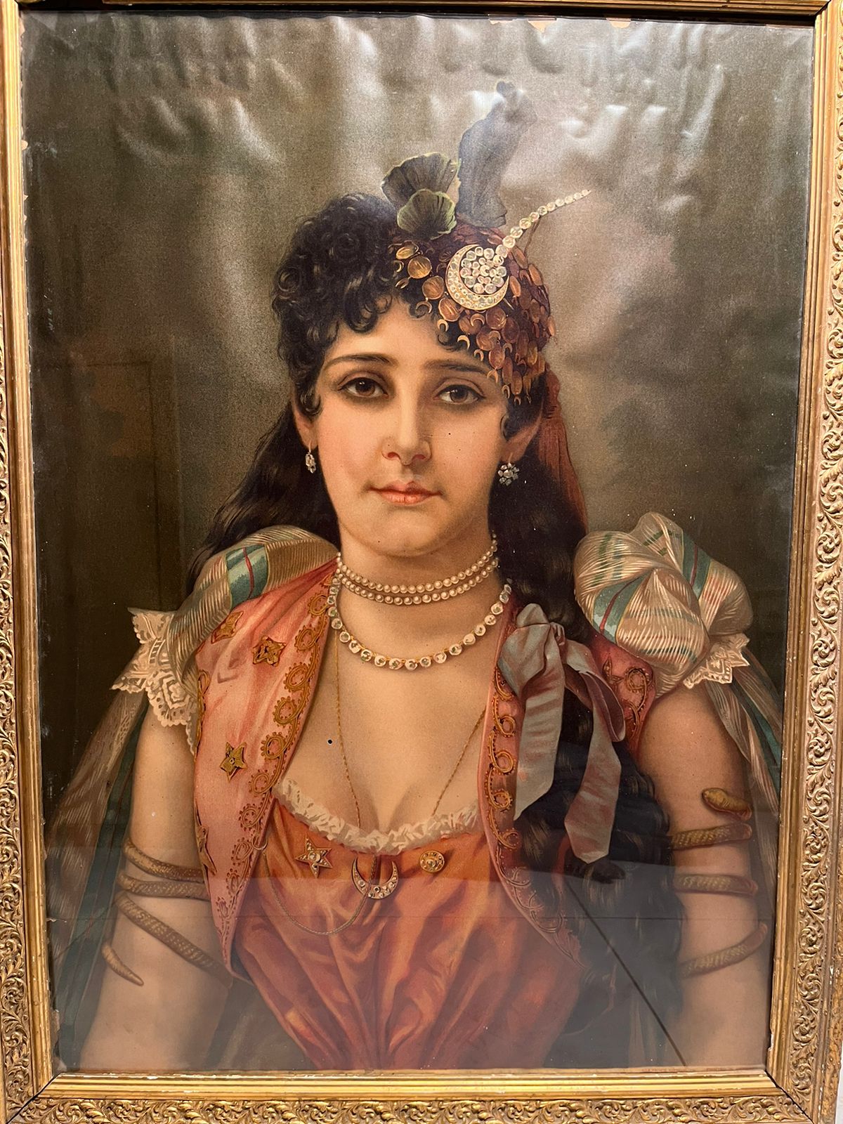 This is a beautiful 120+ year old European lady portrait oleograph, showcasing elegance, grace, and vintage aristocratic charm.