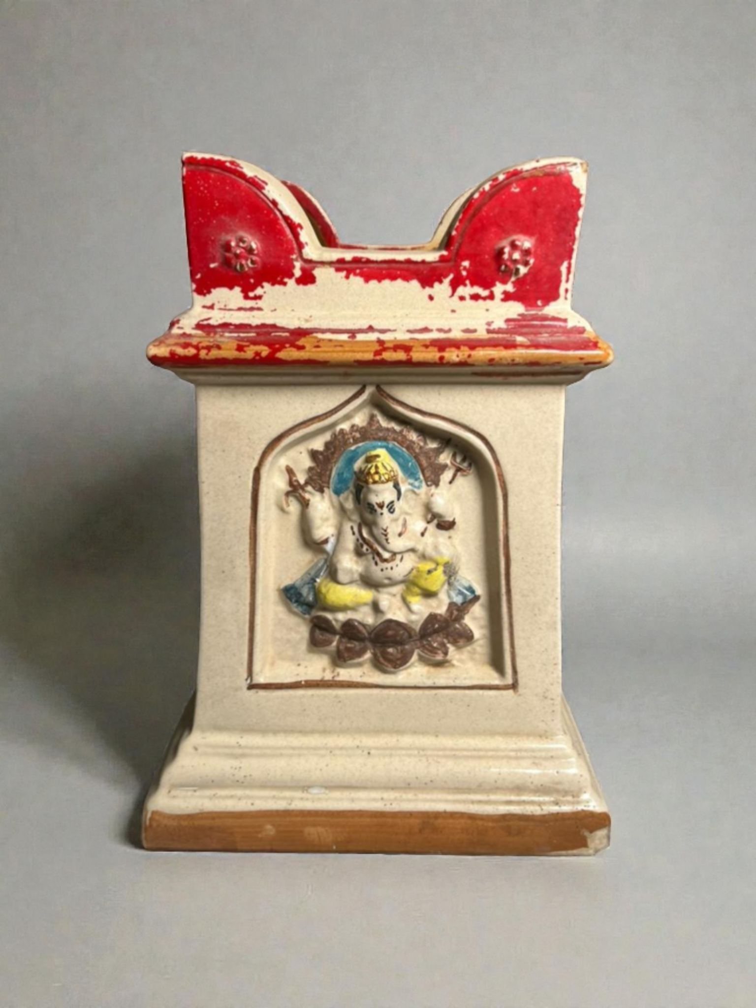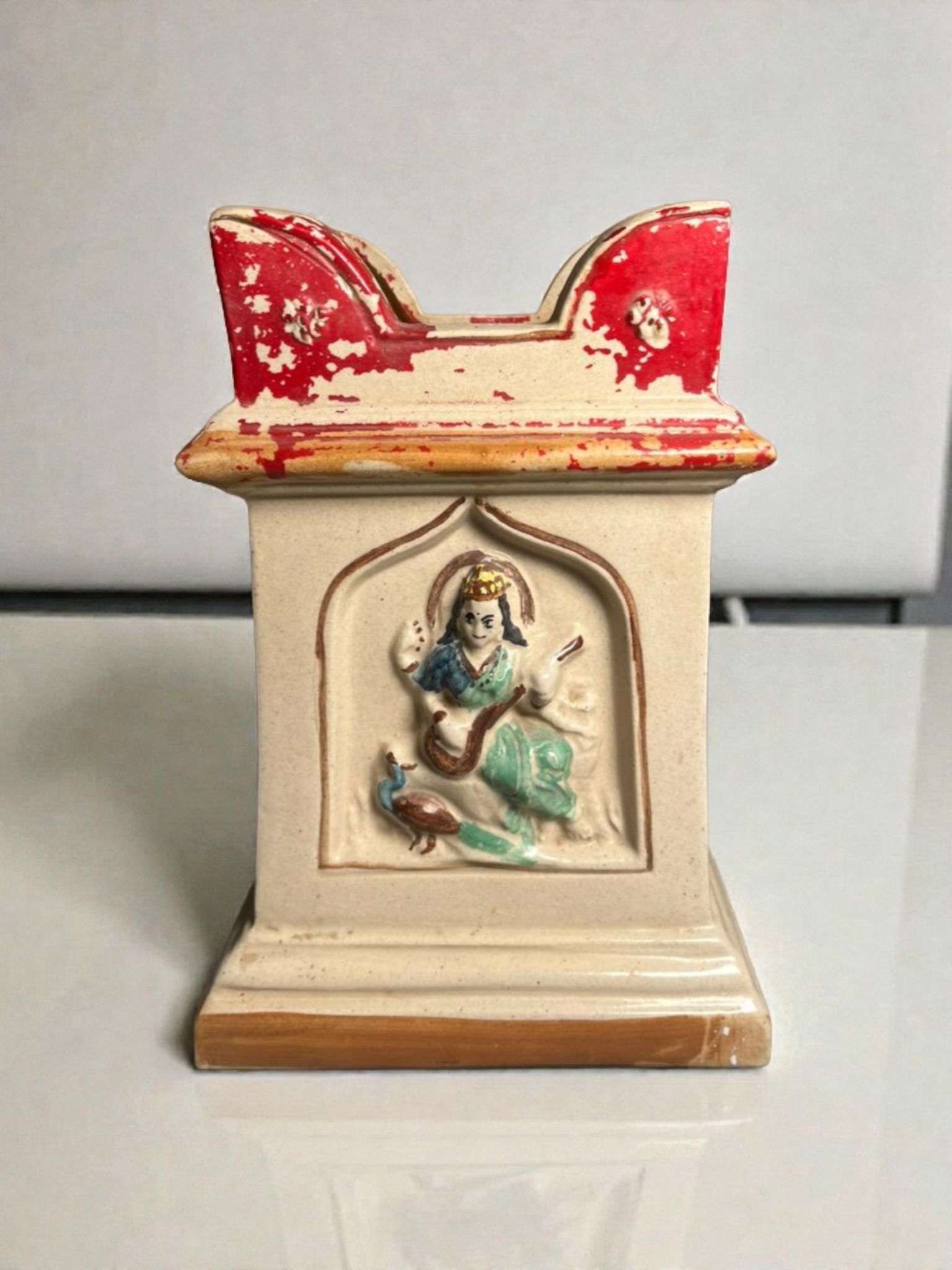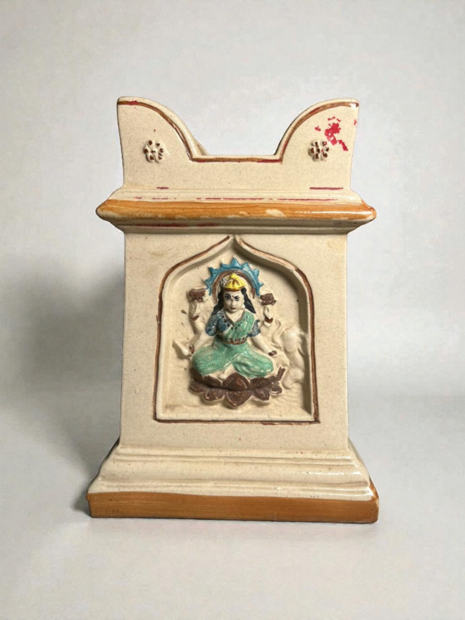 This vintage handcrafted ceramic temple shrine is a timeless decorative piece that blends artistry with cultural heritage. Made with traditional ceramic craftsmanship, it represents classic shrine form often used in homes and sacred spaces. Shrines like this are typically designed to hold idols, incense, candles, or small offerings and bring a sense of spiritual presence to interiors.