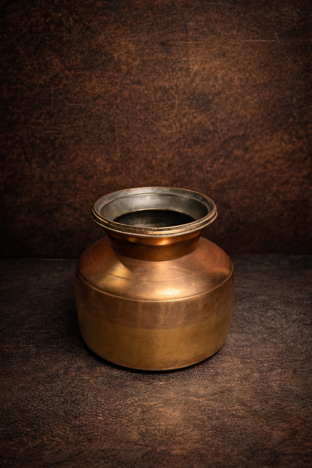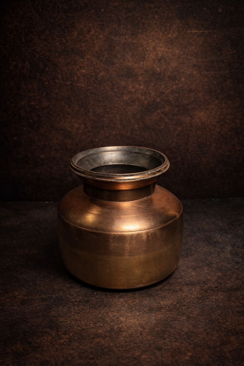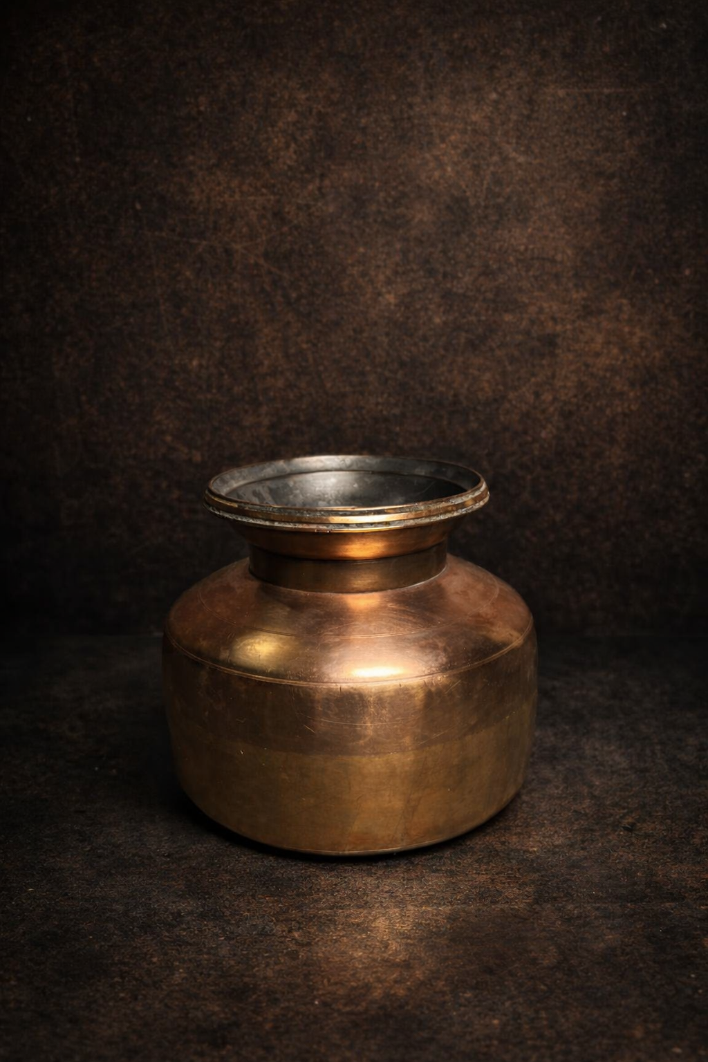 Such pots were commonly used in old households for storing water, grains, ghee, or ritual liquids. The bronze surface has developed a natural aged patina, giving it a warm, earthy tone that highlights its age and authenticity.