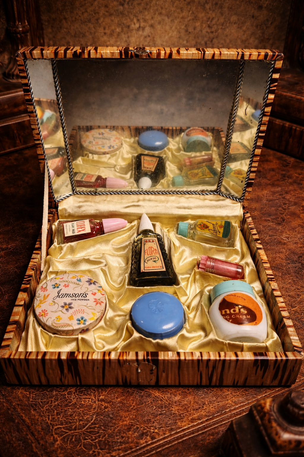 A complete vintage grooming ensemble, rarely found intact with all components — making it a highly desirable collectible that combines beauty, functionality, and nostalgia.
