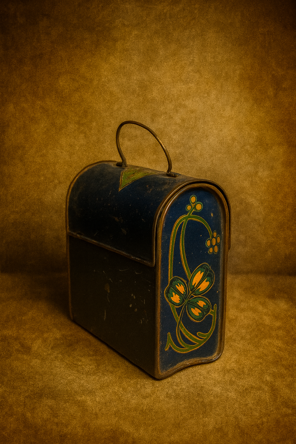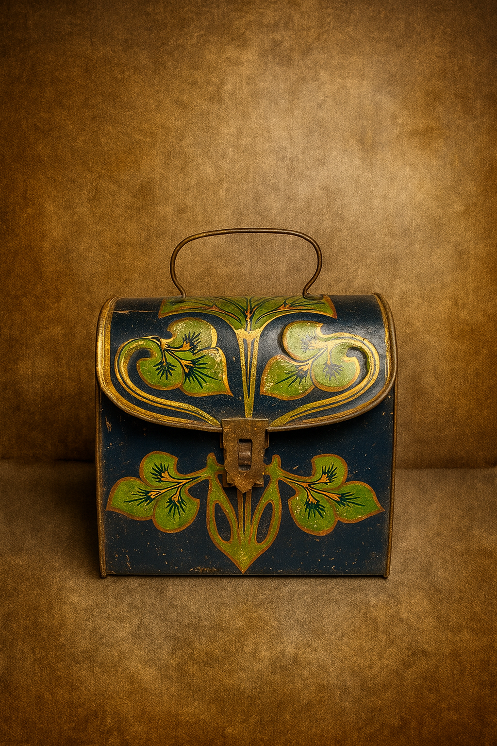Vintage Lithograph Floral Metal Storage Box — Very Old Art Print Work