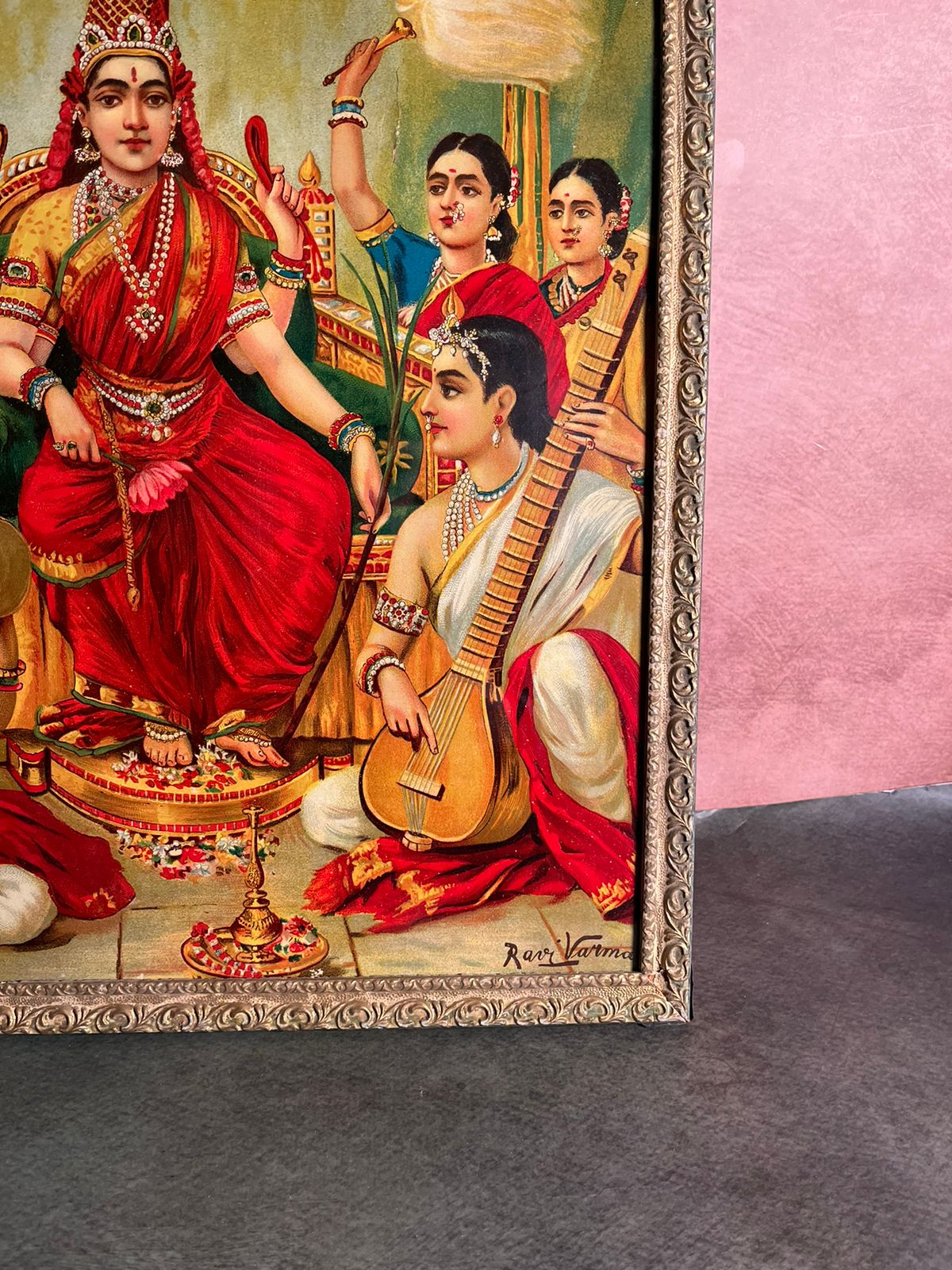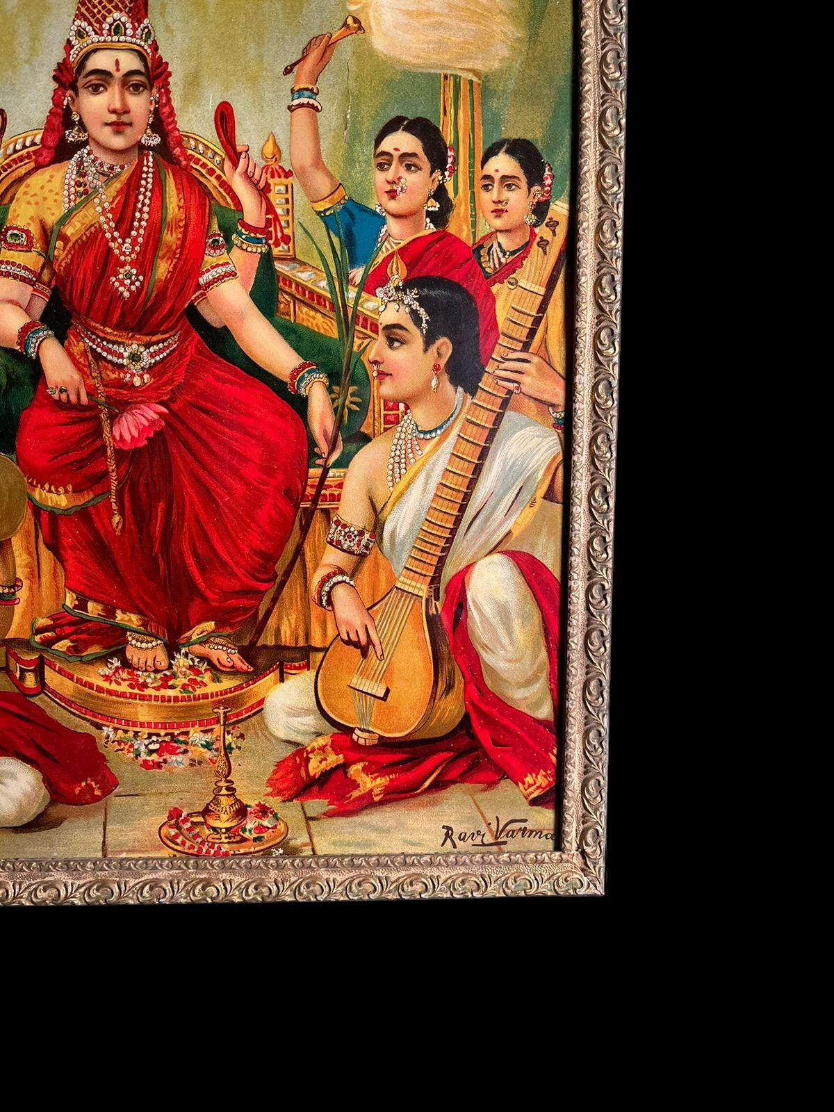 This is an oleograph print (not an original hand-painted artwork), but holds significant collectible value due to its association with Ravi Varma’s legendary style and Indian art history.