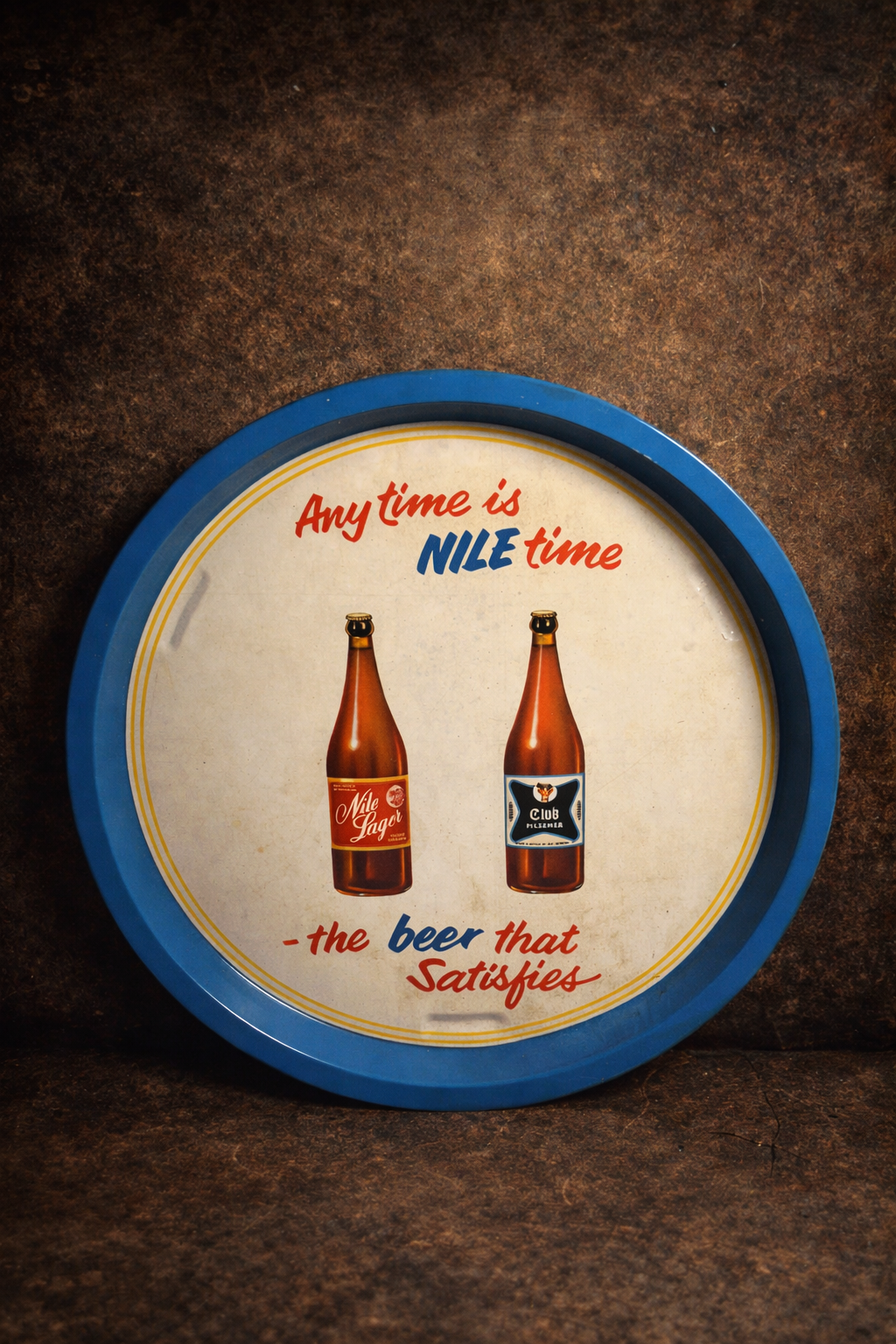 The branding seen on this tray connects to legacy beer culture associated with Nile breweries, a name tied to African brewing history and traditional lager production. �